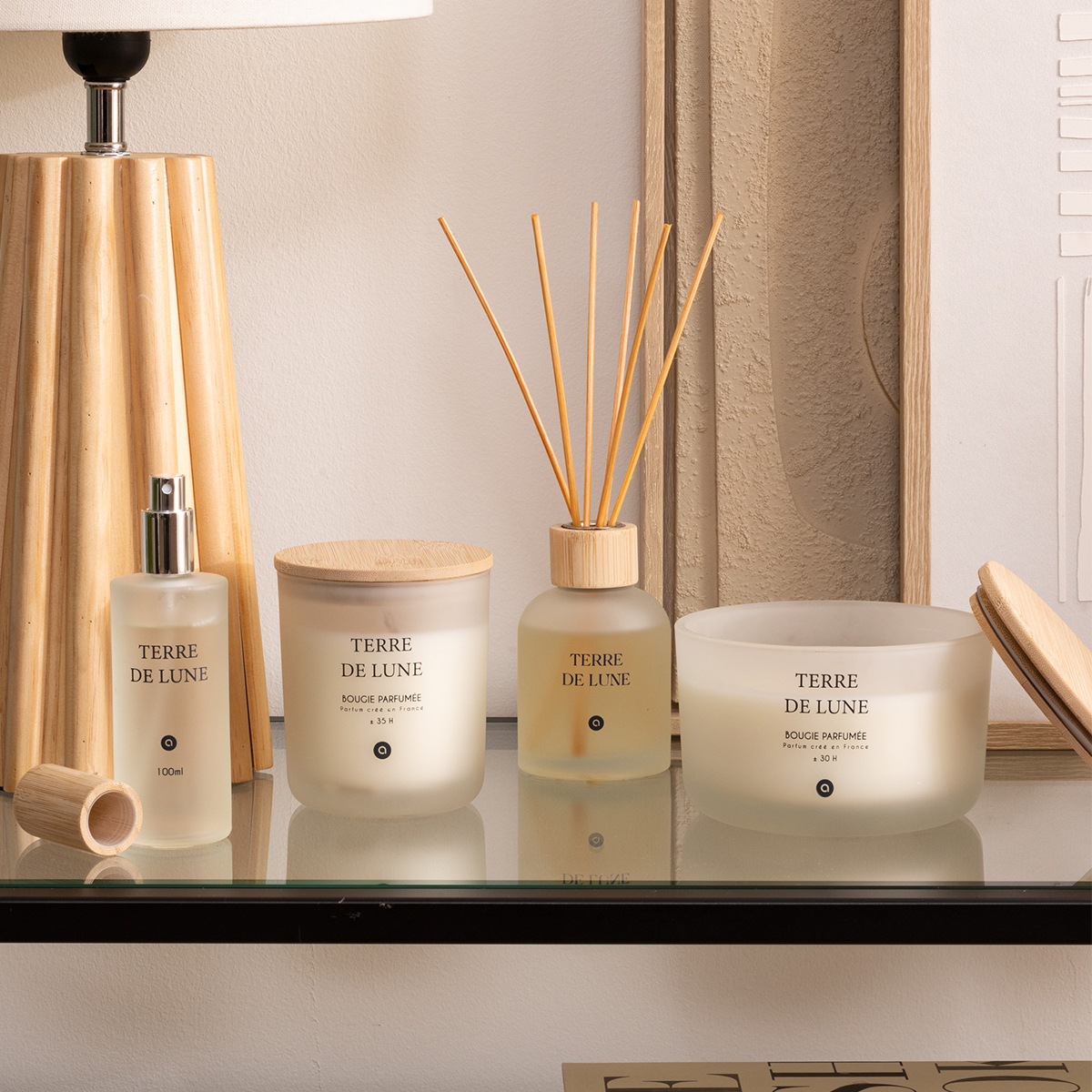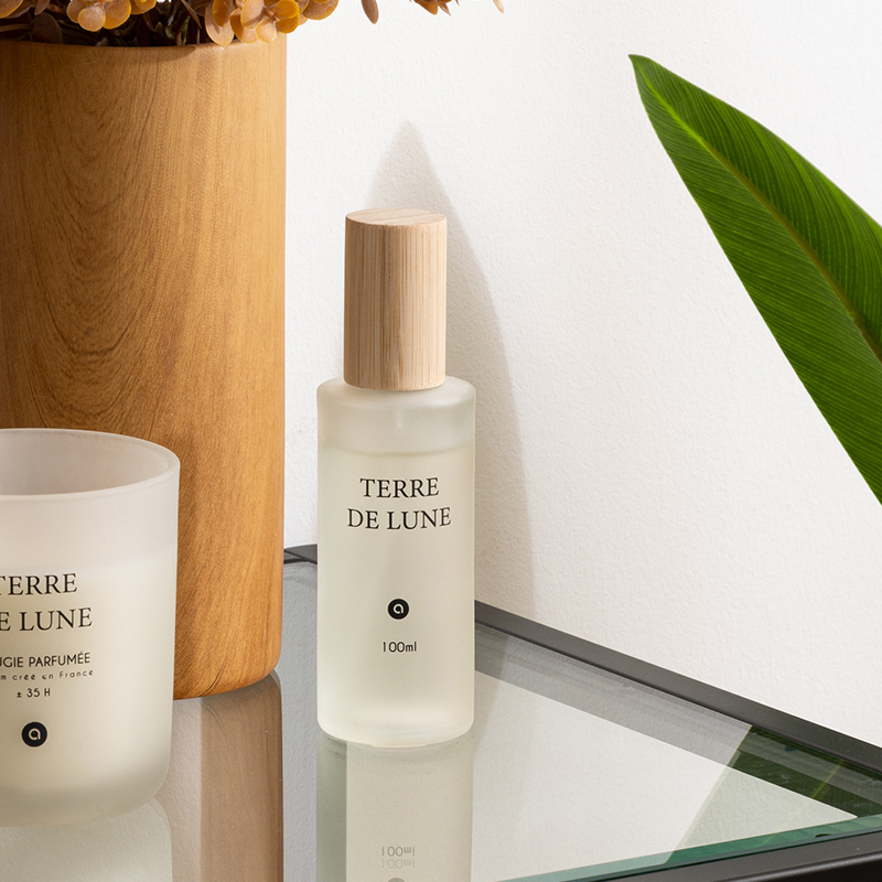 Αρωματικό σπρέυ Terre de Lune με βάρος 100gr. Το άρωμα Terre de Lune είναι κομψό, γήινο και μυστηριώδες που συνδυάζει φυσικές, ρομαντικές και συνάμα ανατολίτικες νότες. Πρόκειται για μια δημιουργία που αποπνέει αίσθηση γαλήνης και ηρεμίας όπως προδίδει και το όνομά του. Είναι τοποθετημένο σε διάφανο γυάλινο βαζάκι και ξύλινο καπάκι. Ιδανικό για να καλύπτει τις έντονες μυρωδιές σε κάθε χώρο. Συνδυάστε το με τα υπόλοιπα προϊόντα της ίδιας συλλογής για ένα ολοκληρωμένο αποτέλεσμα στο χώρο σας.