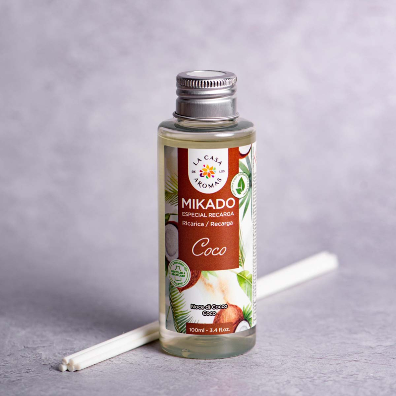 Αρωματικό χώρου χωρητικότητας 100ml με στικς από την εταιρεία La Casa de los Aromas by Corona di Fiori. Με γλυκό άρωμα καρύδας. Κάθε εβδομάδα μπορείτε να αναποδογυρίσετε τα στικς για να ενισχύσετε την ένταση του αρώματος. Αποφύγετε να τα τοποθετείτε κοντά σε κάποια πηγή θερμότητας, ώστε να μην σας τελειώνει γρήγορα το υγρό. Ιδανικό για μια γλυκιά και φρέσκια ατμόσφαιρα σε όλους τους χώρους του σπιτιού. Το άρωμα είναι από 100% φυσικά έλαια.