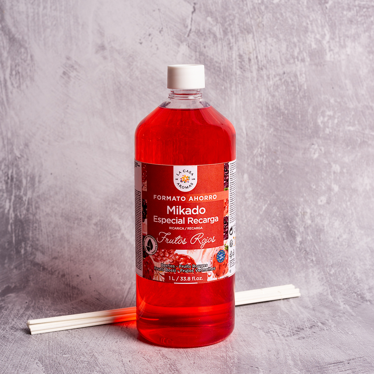 Αρωματικό χώρου χωρητικότητας 1lt με στικς από την εταιρεία La Casa de los Aromas by Corona di Fiori. Με φρουτώδες άρωμα από κόκκινα φρούτα. Κάθε εβδομάδα μπορείτε να αναποδογυρίσετε τα στικς για να ενισχύσετε την ένταση του αρώματος. Αποφύγετε να τα τοποθετείτε κοντά σε κάποια πηγή θερμότητας ή σε παράθυρο, ώστε να μην σας τελειώνει γρήγορα το υγρό. Αν θέλεις, το άρωμα, να είναι πιο ήπιο στο χώρο και να σου κρατήσει περισσότερο, βάλε 2-3 sticks. Ιδανικό για μια γλυκιά και φρέσκια ατμόσφαιρα σε όλους τους χώρους του σπιτιού. Διάρκεια περίπου 6-7 μήνες.