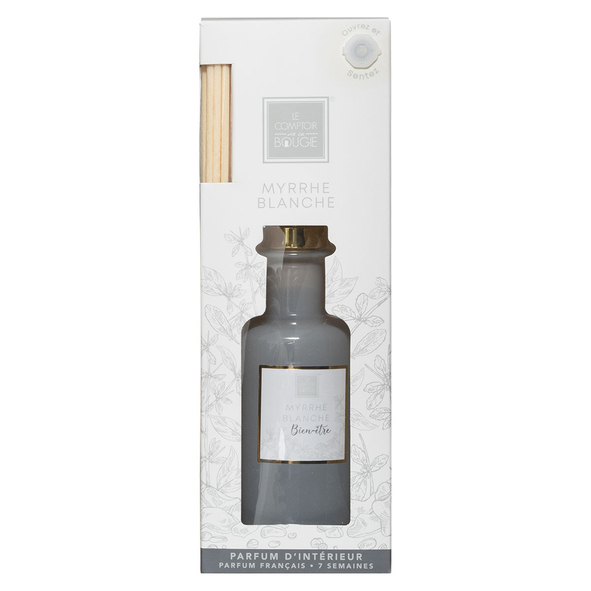 Αρωματικό υγρό χώρου που θα χαρίσει κομψό άρωμα κεχριμπάρι και μύρο στο χώρο σας. Το μπουκάλι είναι γυάλινο σε γκρι απόχρωση με χωρητικότητα 200ml. Διαθέτει 8 ξύλινα στικς που διαχέουν το άρωμα μοναδικά στο χώρο. Διάρκεια αρώματος περίπου 24 εβδομάδες.