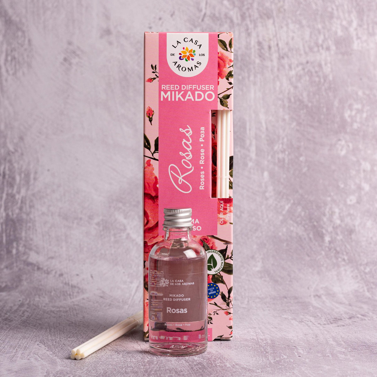 Αρωματικό χώρου χωρητικότητας 50ml με στικς από την εταιρεία La Casa de los Aromas by Corona di Fiori. Με λουλουδάτο άρωμα τριαντάφυλλου. Κάθε εβδομάδα μπορείτε να αναποδογυρίσετε τα στικς για να ενισχύσετε την ένταση του αρώματος. Αποφύγετε να τα τοποθετείτε κοντά σε κάποια πηγή θερμότητας ή σε παράθυρο, ώστε να μην σας τελειώνει γρήγορα το υγρό. Αν θέλεις, το άρωμα, να είναι πιο ήπιο στο χώρο και να σου κρατήσει περισσότερο, βάλε 2-3 sticks. Ιδανικό για μια γλυκιά και φρέσκια ατμόσφαιρα σε όλους τους χώρους του σπιτιού. Διάρκεια περίπου 20 μέρες.