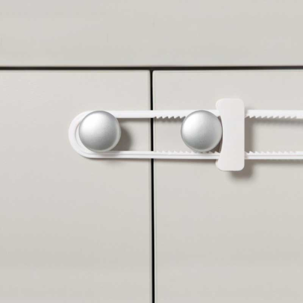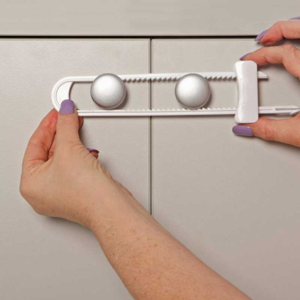 Συρόμενη ασφάλεια ντουλαπιών από την εταιρεία Dream Baby για την μέγιστη προστασία του μωρού σας. Ιδανική για ντουλάπια με πόμολα ή λαβές. Εύκολη χρήση από ενήλικες, καθώς κλειδώνει και ξεκλειδώνει σύροντας την ασφάλεια. Με κομψό και διακριτικό σχεδιασμό και λευκό χρώμα, δεν επηρεάζει την διακόσμηση του σπιτιού σας.