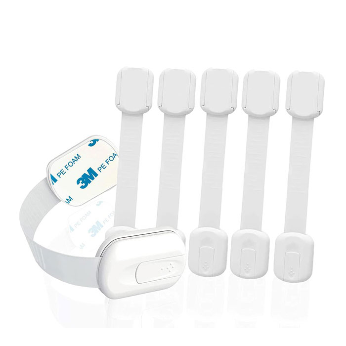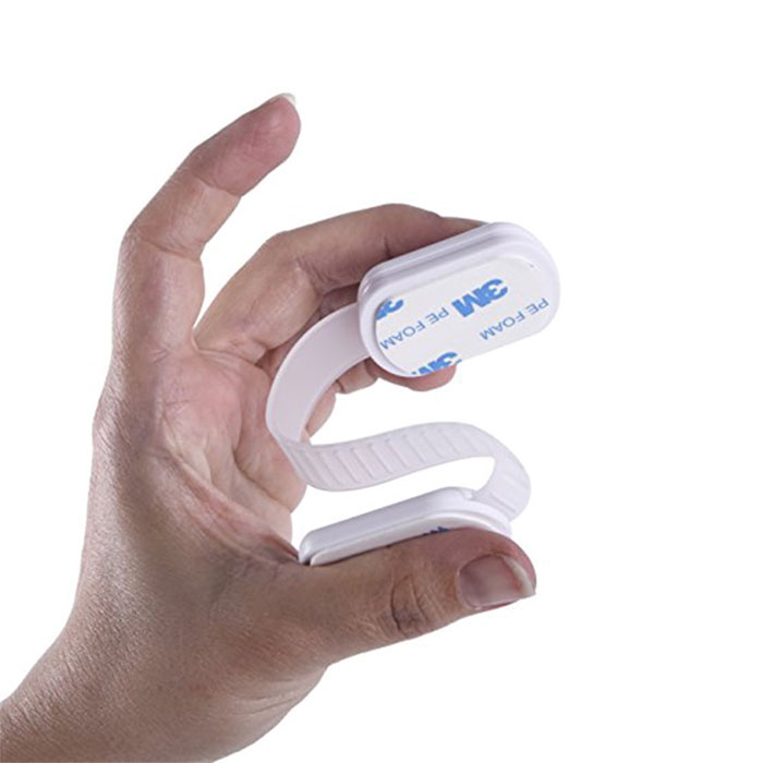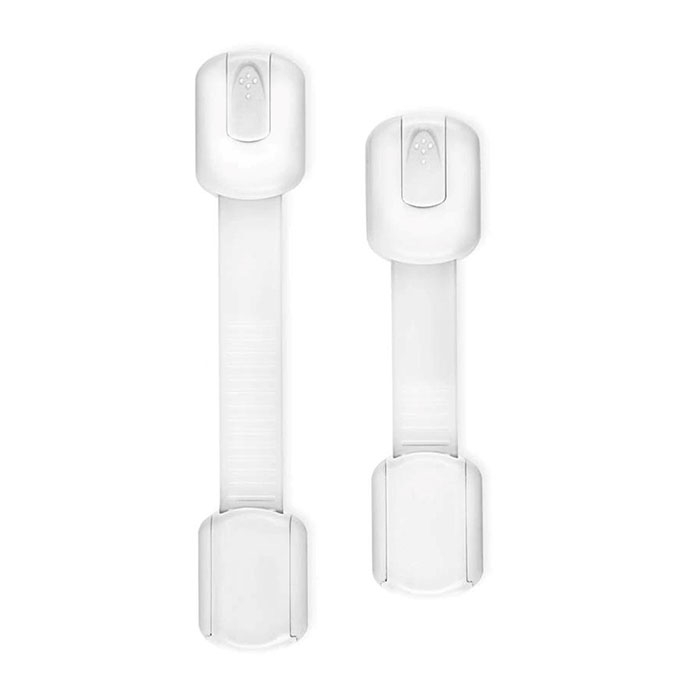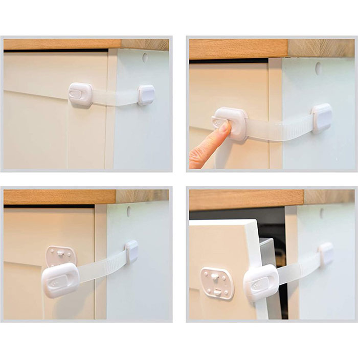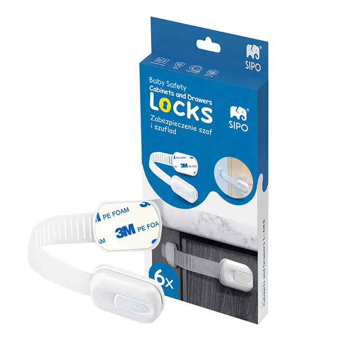 Ασφάλειες πολλαπλών χρήσεων σετ 10 τεμαχίων από την εταιρεία Sipo σε λευκό χρώμα. Είναι κατασκευασμένες από πλαστικό υλικό ABS. Είναι ρυθμιζόμενες δηλαδή μπορείτε να ρυθμίσετε το μήκος σύμφωνα με τις ανάγκες σας. Η ασφάλεια τοποθετείται στην επιφάνεια του επίπλου χρησιμοποιώντας την κολλητική ταινία που θα βρείτε στη συσκευασία. Για να ανοίξετε ένα ντουλάπι ή ένα συρτάρι, πατήστε το ανάλογο ξεκλείδωμα της ασφάλειας. Η κλειδαριά παρέχει γρήγορη πρόσβαση στους ενήλικες και κρατάει μακριά τα μικρά παιδιά. Πριν την τοποθέτηση καθαρίστε και στεγνώστε καλά την επιφάνεια. Ξεκολλήστε την ταινία από την ασφάλεια και κολλήστε την ασφάλεια στο σημείο που θέλετε. Πιέστε σταθερά για να κολλήσει. Η κόλλα σταθεροποιείται σε περίπου 24 ώρες.