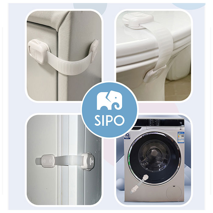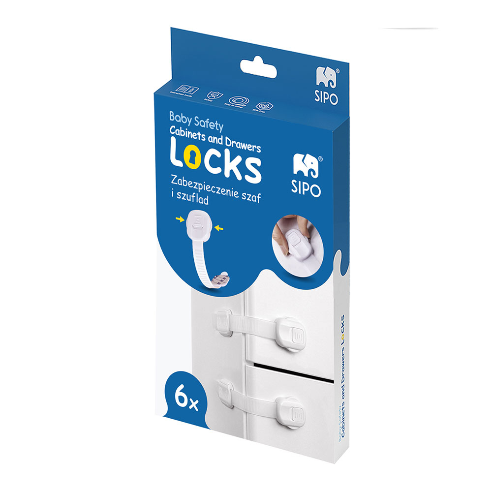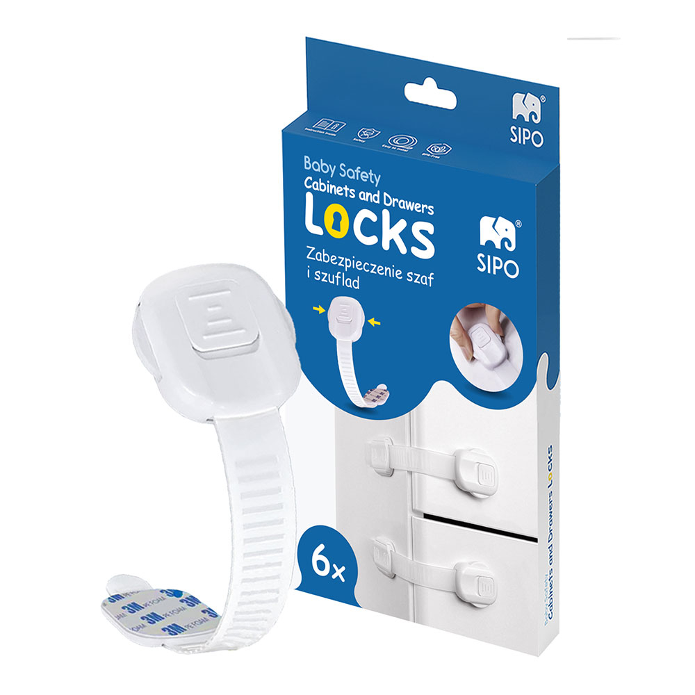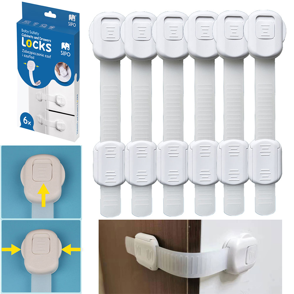 Ασφάλειες πολλαπλών χρήσεων σετ 6 τεμαχίων από την εταιρεία Sipo σε λευκό χρώμα. Είναι κατασκευασμένες από πλαστικό υλικό ABS. Είναι ρυθμιζόμενες δηλαδή μπορείτε να ρυθμίσετε το μήκος σύμφωνα με τις ανάγκες σας. Έχουν λειτουργία On/Off ώστε να κλειδώνουν και να ξεκλειδώνουν εύκολα από τους ενήλικες. Δεν απαιτούνται πρόσθετα εργαλεία για την τοποθέτησή τους. Επίσης, δεν αφήνουν σημάδια κατά την αφαίρεσή τους. Η κλειδαριά παρέχει γρήγορη πρόσβαση στους ενήλικες και κρατάει μακριά τα μικρά παιδιά. Πριν την τοποθέτηση καθαρίστε και στεγνώστε καλά την επιφάνεια. Ξεκολλήστε την ταινία από την ασφάλεια και κολλήστε την ασφάλεια στο σημείο που θέλετε. Πιέστε σταθερά για να κολλήσει. Η κόλλα σταθεροποιείται σε περίπου 24 ώρες.