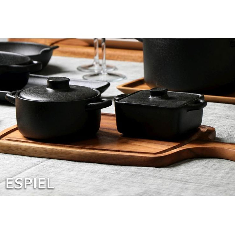 Πυρίμαχη γάστρα από την εταιρεία Espiel. Είναι κατασκευασμένη από κεραμικό υλικό σε μαύρο χρώμα. Διαθέτει λαβές για εύκολη μεταφορά. Με όψη μαντεμιού που αποπνέει "παράδοση", αλλά κι ο τρόπος κατασκευής της από υψηλής ποιότητας stoneware προσθέτει αντοχή στο προϊόν και εξασφαλίζει ένα υγιεινό μαγείρεμα. Μπορεί να χρησιμοποιηθεί και ως σκεύος σερβιρίσματος. Κατάλληλη για φούρνο μικροκυμάτων και πλυντήριο πιάτων. Συνδυάστε τη με τα υπόλοιπα σκεύη της ίδιας συλλογής για ένα ολοκληρωμένο αποτέλεσμα στην κουζίνα σας. Χωρητικότητα: 400ml.