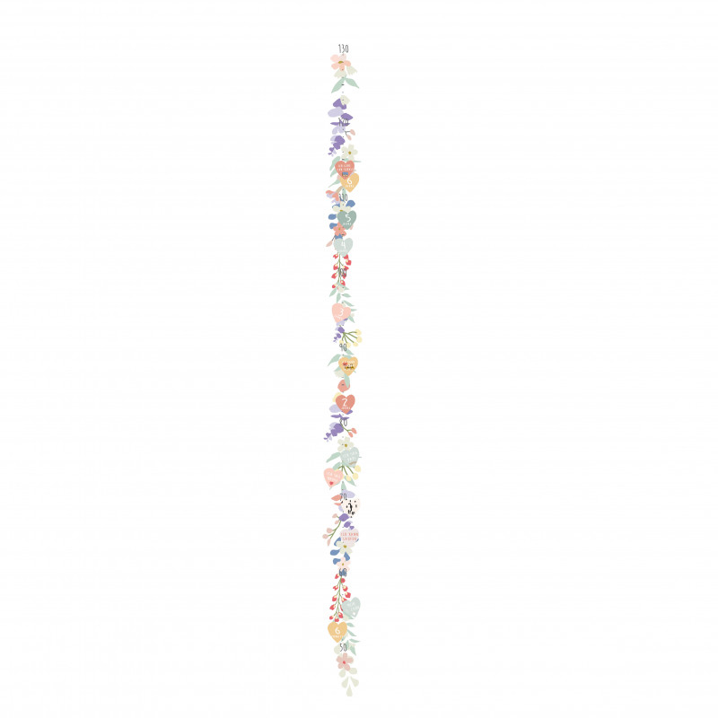 Παρακολουθήστε την ανάπτυξη του παιδιού σας και δώστε χρώμα στους τοίχους του δωματίου του με το αυτοκόλλητο αναστημόμετρο της γαλλικής εταιρείας Mimi'lou. Έχει φλοράλ σχέδιο σε πολύχρωμες αποχρώσεις που στολίζουν το δωμάτιο και μετρούν το ύψος του. Διαθέτει αυτοκόλλητες καρδούλες που αναγράφουν ηλικία και διάφορα αναπτυξιακά ορόσημα για να τα τοποθετήσετε στο αναστημόμετρο. Εφαρμόζουν εύκολα σε ομαλές, στεγνές και καθαρές επιφάνειες ενώ αφαιρούνται εξίσου εύκολα.
