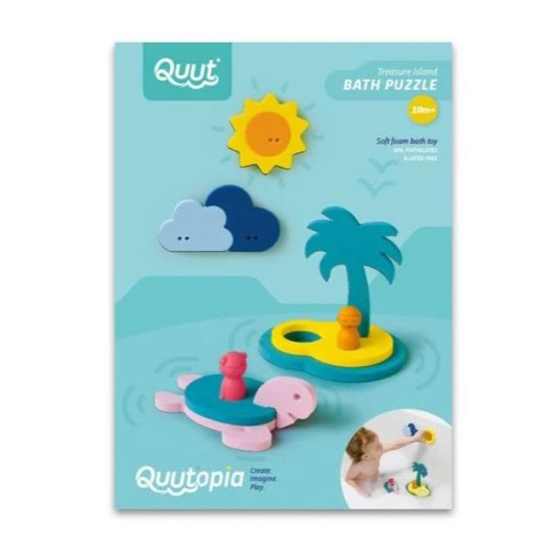 Τρισδιάστατο παζλ για το μπάνιο, από τη νέα σειρά Quutopia της εταιρίας Quut. Τα κομμάτια του όταν ενωθούν, δημιουργούν ένα τοπίο στη θάλασσα κι ένα νησί όπου κρύβεται ο χαμένος θησαυρός! Με τα παζλ της Quutopia, τα μικρά παιδιά διασκεδάζουν παίζοντας κατά τη διάρκεια του μπάνιου! Το πανέμορφο αυτό παζλ ενθαρρύνει το δημιουργικό παιχνίδι, βελτιώνει τις κινητικές δεξιότητες και εξασφαλίζει ποιοτικό χρόνο ανάμεσα σε γονείς και παιδιά, καθώς παίζουν μαζί. Μόλις ενώσετε τα κομμάτια του θα μεταφερθείτε στο μαγικό κόσμο της θάλασσας, που είναι γεμάτος περιπέτειες! Αποτελείται από 8 κομμάτια, κατασκευασμένα από αφρώδες υλικό που κολλάει στις επιφάνειες του μπάνιου όταν βρέχεται. Τα κομμάτια δεν απορροφούν νερό, αλλά επιπλέουν σε αυτό. Κατασκευάζονται από ανακυκλώσιμο υλικό, απαλλαγμένο από BPA, φθαλικά και latex. Όλα τα προϊόντα της Quutopia τηρούν τις προδιαγραφές ασφαλείας.