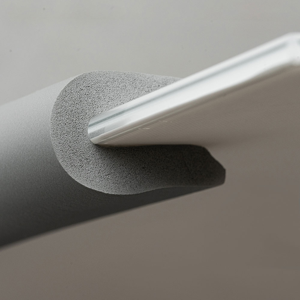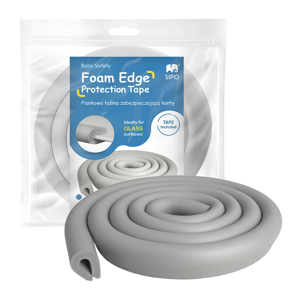 Αφρώδης προστατευτική επιφάνεια με αυτοκόλλητο από την εταιρεία Sipo σε γκρι χρώμα. Είναι κατασκευασμένη από αφρό NBR. Ο αφρός απορροφά τη δύναμη κρούσης, μειώνοντας τον κίνδυνο τραυματισμού. Είναι ιδιαίτερα μαλακή και εύκαμπτη ώστε να μπορείτε να την τοποθετείτε στις γωνίες και στις αιχμηρές άκρες των γυάλινων επιφανειών. Είναι χρήσιμα για τα παιδιά που μόλις μαθαίνουν να περπατούν και έτσι εκτίθενται σε συχνή επαφή με έπιπλα. Κόβεται σε όποια διάσταση επιθυμείτε. Είναι πολύ εύκολη στην τοποθέτηση και δεν χρειάζονται εργαλεία ,απλώς μετρήστε το μήκος και κολλήστε το στο επιθυμητό σημείο, χρησιμοποιώντας την ταινία διπλής όψης που θα βρείτε στην συσκευασία. Πριν την τοποθέτηση καθαρίστε και στεγνώστε καλά την επιφάνεια. Ξεκολλήστε την ταινία από την ασφάλεια και κολλήστε την ασφάλεια στο σημείο που θέλετε. Πιέστε σταθερά για να κολλήσει. Η κόλλα σταθεροποιείται σε περίπου 24 ώρες. Τα παιδιά μπορεί να αφαιρούν κομμάτια της ταινίας γι' αυτό συνιστάται ο τακτικός έλεγχος. Καθαρίζεται εύκολα με ένα νωπό πανί.