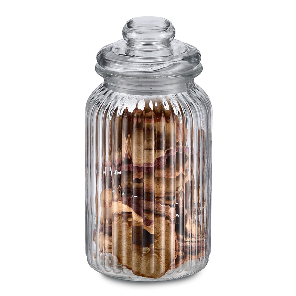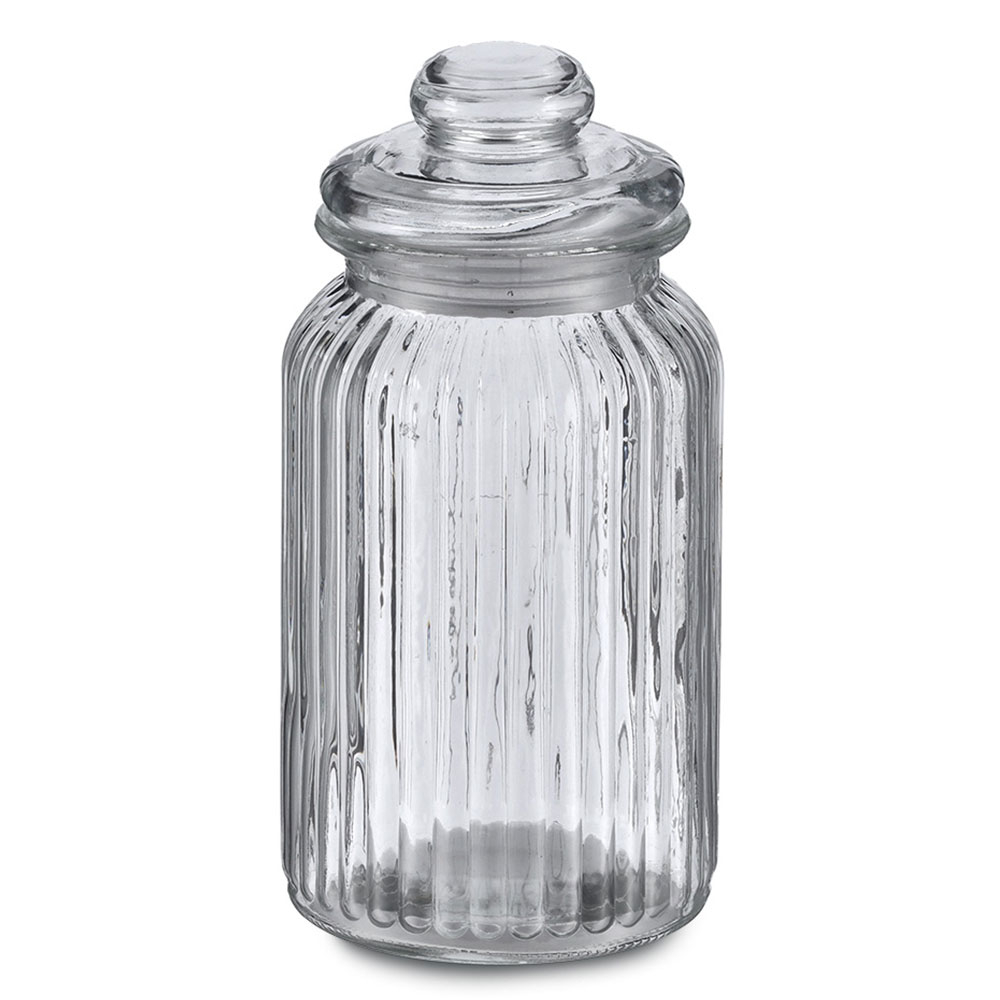 Βάζο για την κουζίνα με ανάγλυφο σχέδιο, κατασκευασμένο από διάφανο γυαλί. Διαθέτει καπάκι που κλείνει αεροστεγώς με δακτύλιο σιλικόνης. Ιδανικό για να αποθηκεύσετε τα τρόφιμά σας και να διατηρήσετε οργανωμένη την κουζίνα και τα ντουλάπια σας. Συνδυάστε το με τα υπόλοιπα είδη του ίδιου σετ για ένα ολοκληρωμένο αποτέλεσμα στο χώρο σας. Χωρητικότητα 1200ml.
