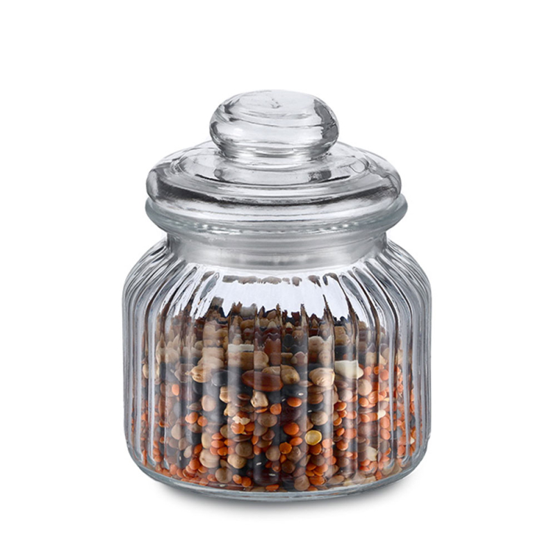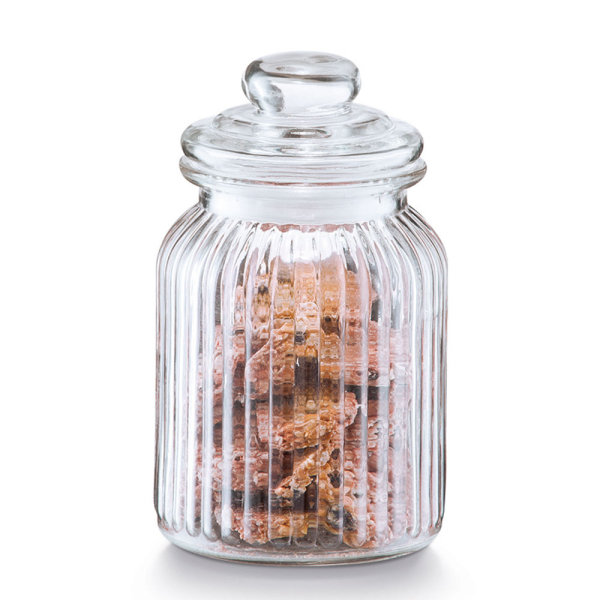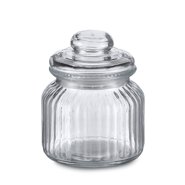 Βάζο για την κουζίνα με ανάγλυφο σχέδιο, κατασκευασμένο από διάφανο γυαλί. Διαθέτει καπάκι που κλείνει αεροστεγώς με δακτύλιο σιλικόνης. Ιδανικό για να αποθηκεύσετε τα τρόφιμά σας και να διατηρήσετε οργανωμένη την κουζίνα και τα ντουλάπια σας. Συνδυάστε το με τα υπόλοιπα είδη του ίδιου σετ για ένα ολοκληρωμένο αποτέλεσμα στο χώρο σας. Χωρητικότητα 600ml.