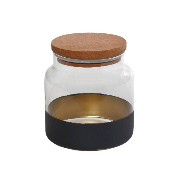 Βάζο για την κουζίνα από την εταιρεία Espiel σε διάφανο χρώμα με μπλε και χρυσή λεπτομέρεια και μοντέρνο σχέδιο. Είναι κατασκευασμένο από γυαλί και έχει ξύλινο καπάκι. Μπορείτε να τοποθετήσετε μέσα ζάχαρη, καφέ, τσάι ή ότι άλλο θέλετε! Συνδυάστε τα με τα υπόλοιπα είδη της ίδιας σειράς.