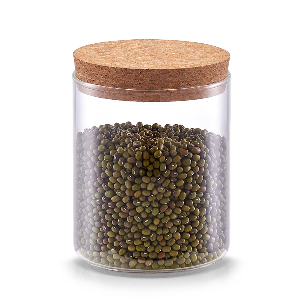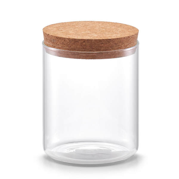 Βάζο κουζίνας κατασκευασμένο από διάφανο γυαλί με καπάκι από μπεζ φελλό. Ιδανικό για να αποθηκεύσετε τα τρόφιμά σας και να διατηρήσετε οργανωμένη την κουζίνα και τα ντουλάπια σας. Χωρητικότητα 650ml.