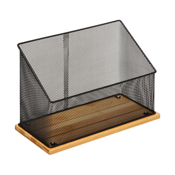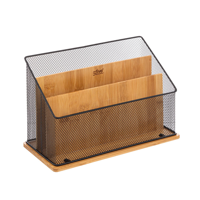 Οργανωτής γραφείου με μαύρο μεταλλικό σκελετό και χωρίσματα κατασκευασμένα από bamboo. Τα χωρίσματα είναι αφαιρούμενα για να δημιουργήσετε το επιθυμητό μέγεθος θήκης. Ιδανική βάση για να οργανώσετε το γραφείο σας. Συνδυάστε το με τα υπόλοιπα προϊόντα της ίδιας συλλογής για ένα ολοκληρωμένο αποτέλεσμα.
