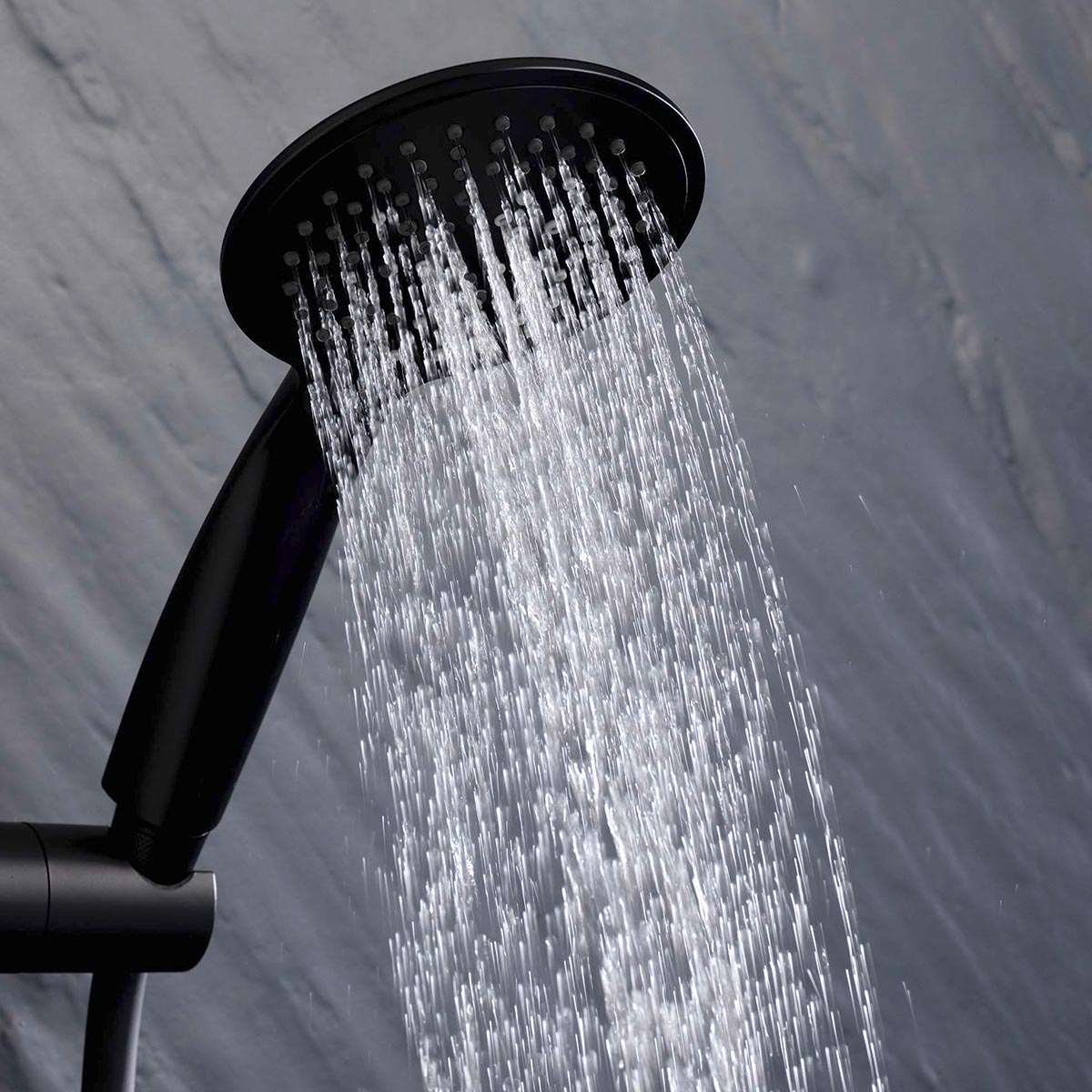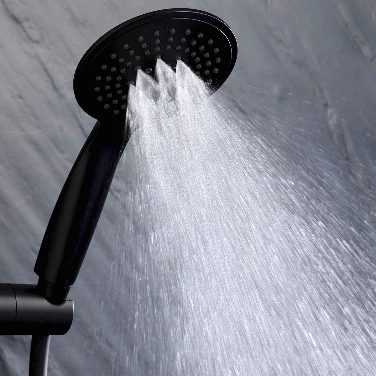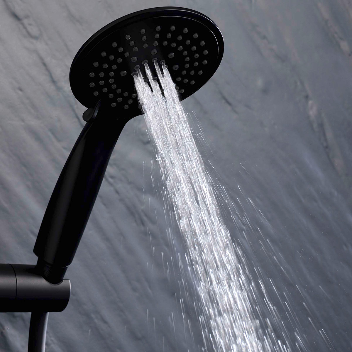 Στήλη ντουζ σε μαύρο χρώμα. Το σετ περιλαμβάνει 1 βέργα ντουζ και 1 στρογγυλή κεφαλή ντουζ πολλαπλών λειτουργιών με σπιράλ. Το τηλέφωνο είναι κατασκευασμένη από ανθεκτικό πλαστικό κατά των αλάτων και χάρη στις 5 διαφορετικές λειτουργίες ροής που διαθέτει μπορείτε να επιλέξετε τον κατάλληλο τύπο για εσάς. Οι λειτουργίες ρυθμίζονται γυρίζοντας τη διακριτική λαβή που έχει. Ο σωλήνας είναι κατασκευασμένος από μαύρο πλαστικό υλικό. Κατάλληλο για χρήση με ταχυθερμοσίφωνες ή ηλιακούς θερμοσίφωνες. Μειώστε έως και 40% την κατανάλωση νερού, χρησιμοποιώντας τηλέφωνο μπάνιου με ρυθμιζόμενη ροή.