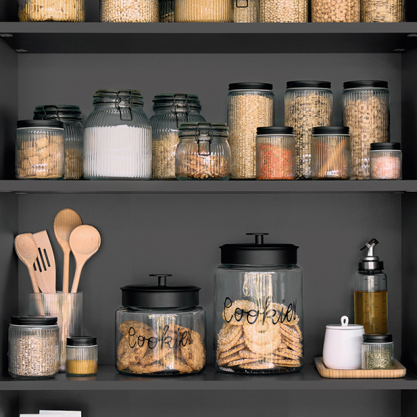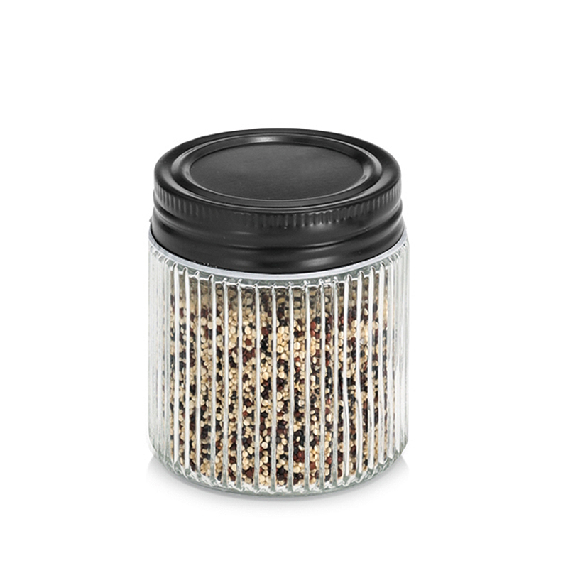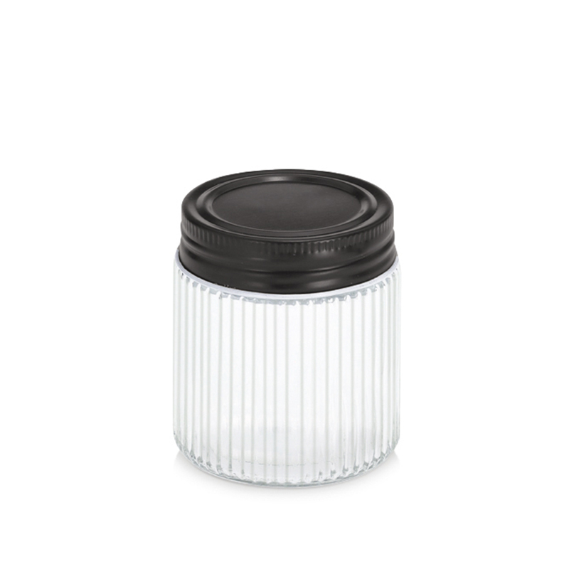 Βαζάκι μπαχαρικών κατασκευασμένο από διάφανο ανάγλυφο γυαλί με βιδωτό μεταλλικό καπάκι σε μαύρο χρώμα. Κλείνει αεροστεγώς και είναι ιδανικό για να παραμένουν τα μπαχαρικά φρέσκα, χωρίς να χάνουν το άρωμά τους. Χωρητικότητα: 120ml. Συνδυάστε το με τα υπόλοιπα είδη της ίδιας συλλογής για ένα ολοκληρωμένο αποτέλεσμα στη κουζίνα σας.
