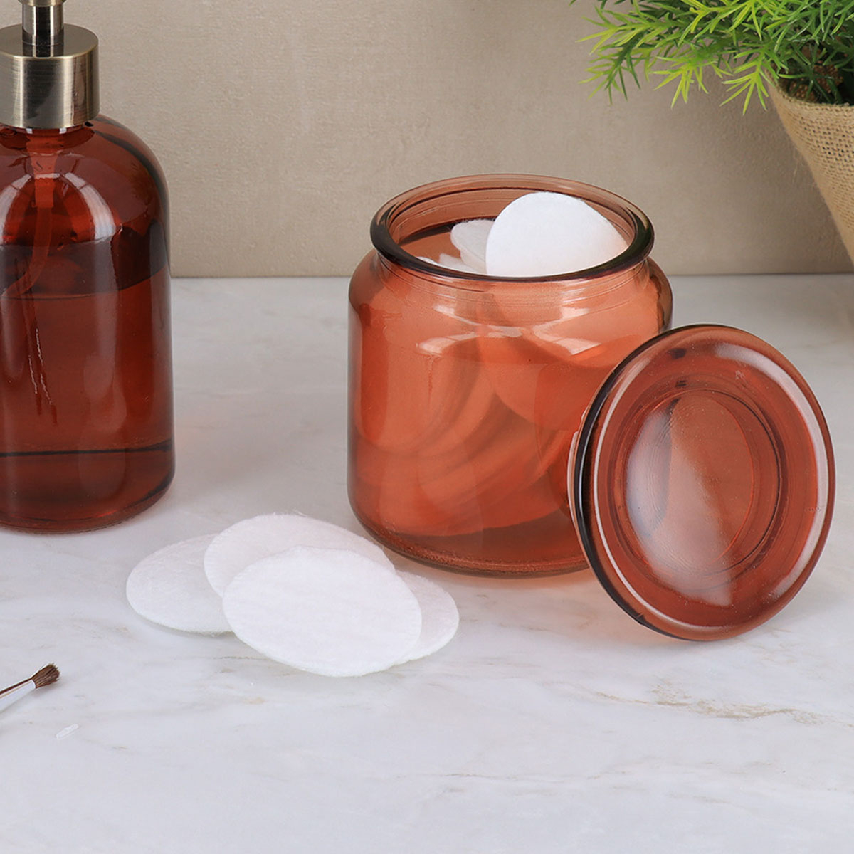 Βαμβακοθήκη με καπάκι σε μίνιμαλ σχεδιασμό και πορτοκαλί απόχρωση. Είναι κατασκευασμένο από γυαλί. Ιδανική για την αποθήκευση βαμβακιού, δίσκων ντεμακιγιάζ ή μπατονέτων, προσφέρει πρακτική λύση καθημερινής χρήσης, προστατεύοντας το περιεχόμενο από σκόνη και υγρασία χάρη στο καπάκι της. Συνδυάστε το με τα υπόλοιπα είδη της ίδιας σειράς για ένα ολοκληρωμένο αποτέλεσμα.