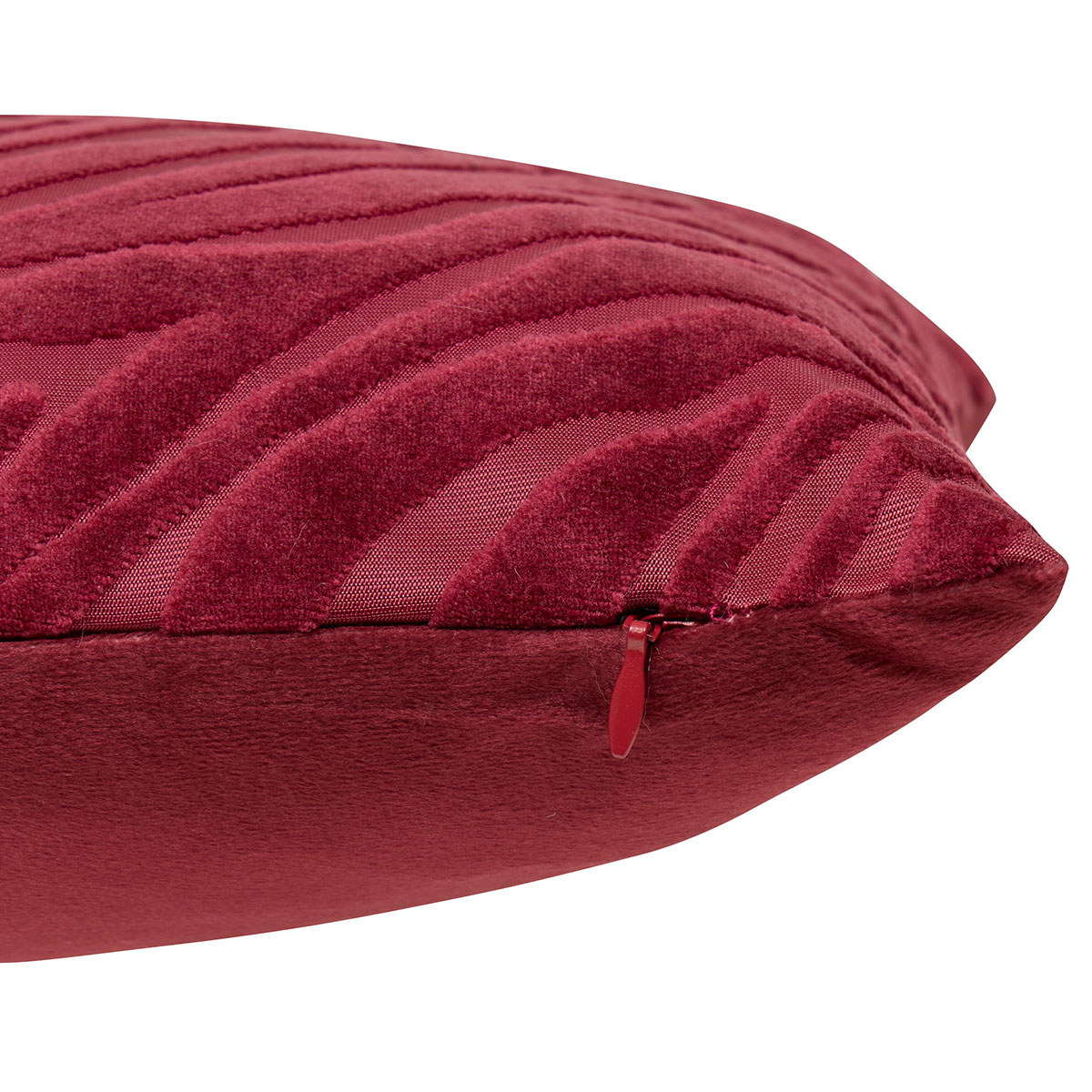 Βελουτέ διακοσμητικό μαξιλάρι διπλής όψης σε μπορντώ χρώμα. Η μια πλευρά έχει ανάγλυφο animal print σχέδιο, ενώ η άλλη είναι μονόχρωμη βελουτέ. Το εξωτερικό ύφασμα είναι από 100% polyester, ενώ το εσωτερικό γέμισμα είναι πολυεστερική βάτα. Διαθέτει φερμουάρ για να αφαιρείται και να πλένεται. Ανανεώστε εύκολα τον χώρο του σπιτιού σας, δίνοντας μια φρέσκια και ανάλαφρη διάθεση. Ιδανικό για τους χειμερινούς μήνες του χρόνου. Συνδυάστε το με τα υπόλοιπα προϊόντα της ίδιας σειράς για ένα ολοκληρωμένο αποτέλεσμα στο χώρο σας.
