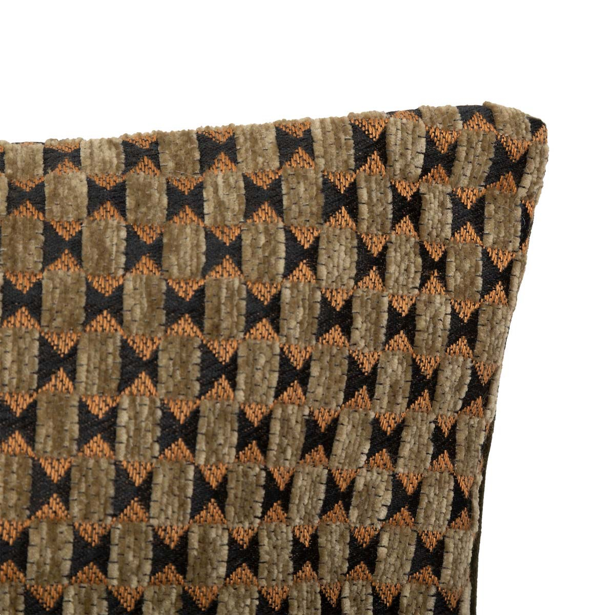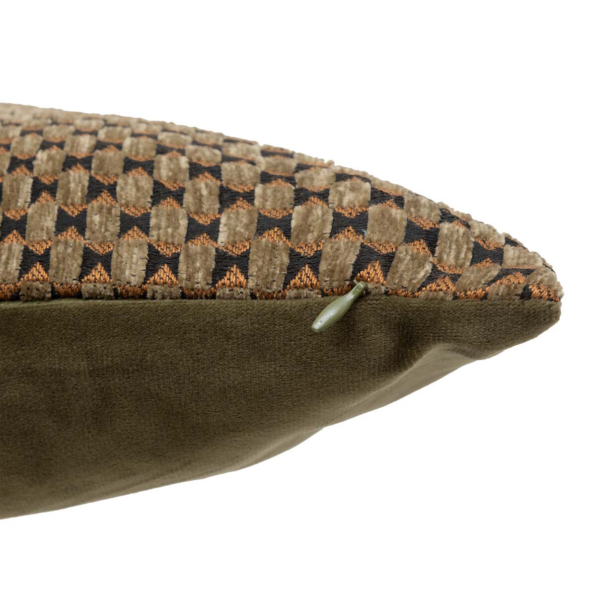 Διακοσμητικό μαξιλάρι για να ανανεώσετε την αισθητική του σπιτιού σας. Η μια πλευρά είναι βελουτέ μονόχρωμη χακί, ενώ η άλλη chenille σε χακί χρώμα με μαύρο και ώχρα σχέδιο. Το ύφασμα της μαξιλαροθήκης είναι κατασκευασμένο από 100% polyester, ενώ η γέμιση από πολυεστερική βάτα. Κλείνει με φερμουάρ για να αφαιρείται η γέμιση και να πλένεται. Συνδυάστε το χρώμα και το ύφος του μαξιλαριού με τον χώρο σας και ανανεώστε την διακόσμησή του.