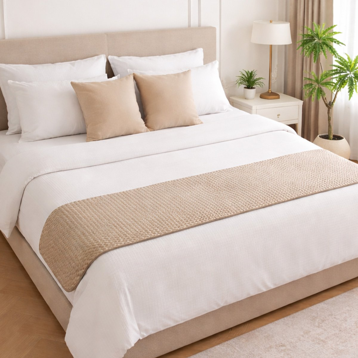 Διακοσμητικό runner σε εκρού χρώμα με ανάγλυφο σχέδιο από την εταιρεία Melinen. Το ύφασμα είναι βελουτέ σύνθεσης 100% polyester βάρους 100gsm. Θα χαρίσει μια ζεστή νότα στην διακόσμηση της κρεβατοκάμαρα σας.