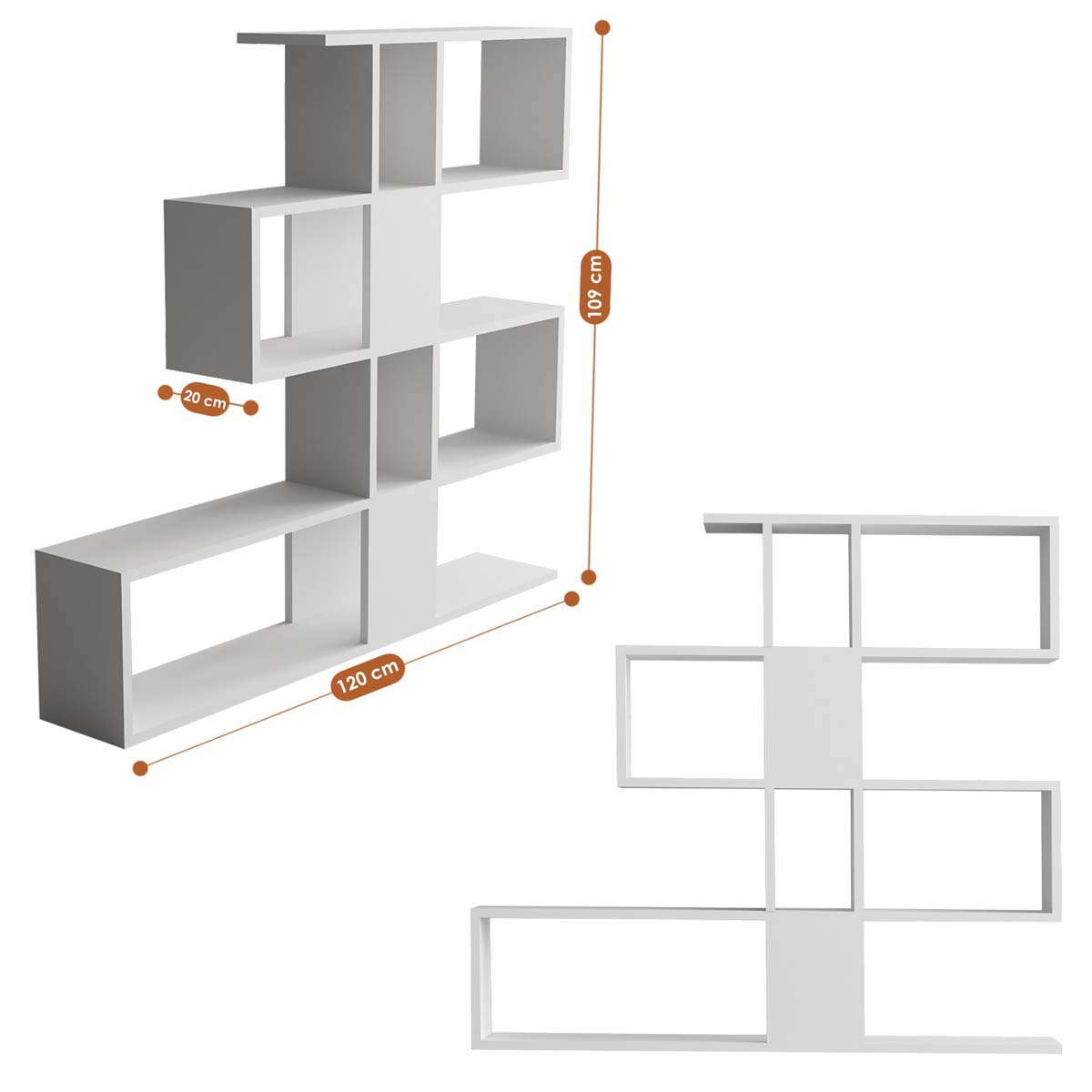 Βιβλιοθήκη δαπέδου σε λευκό χρώμα για να τοποθετήσετε τα βιβλία και τα διακοσμητικά σας αντικείμενα. Τα υψηλής ποιότητας υλικά κατασκευής της, εξασφαλίζουν ανθεκτικότητα και μακροχρόνια χρήση. Με μοντέρνο σχεδιασμό που την καθιστά ιδανική για το σαλόνι ή το γραφείο. Το προϊόν έρχεται αμοντάριστο και συναρμολογείται βάσει οδηγιών.