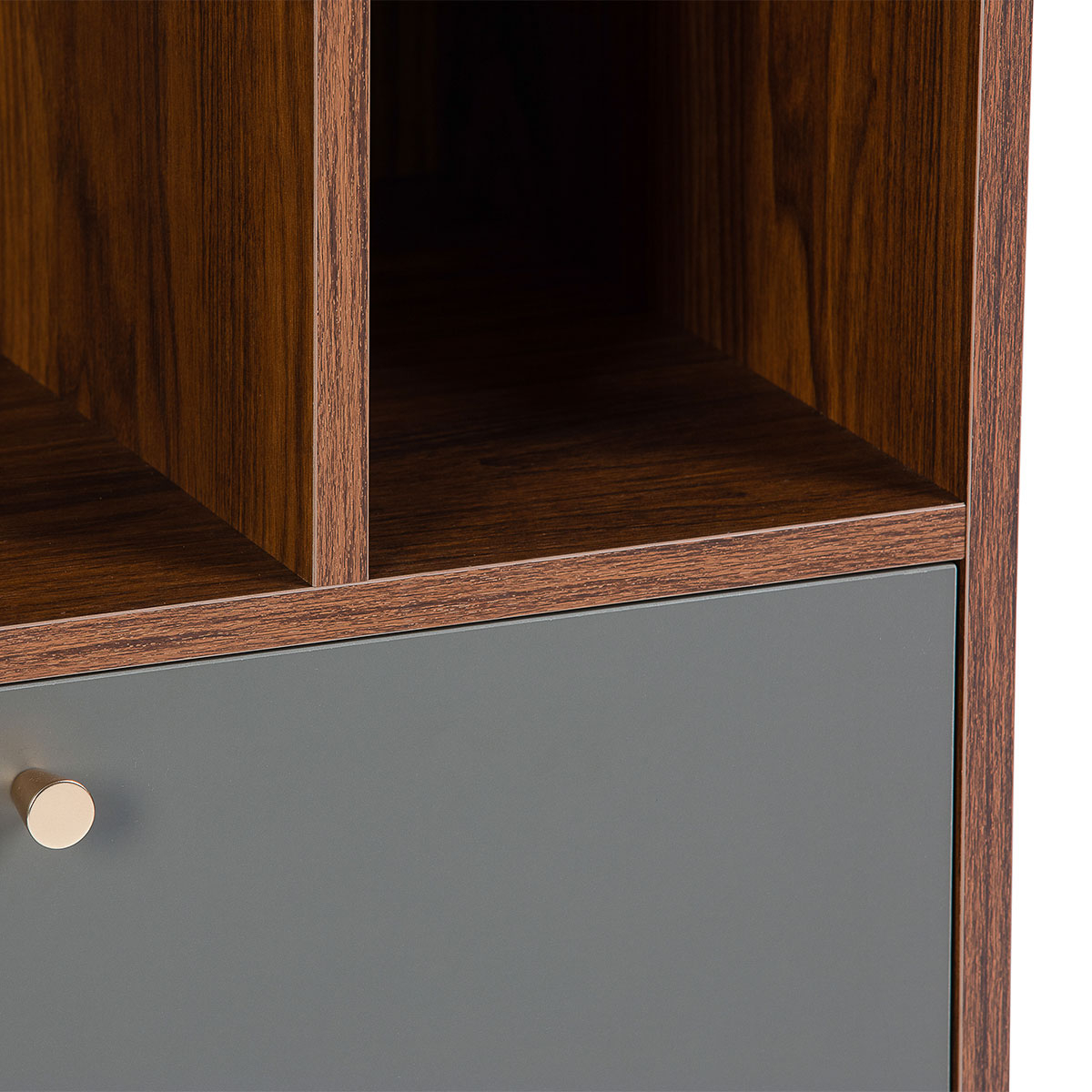 Επιδαπέδια βιβλιοθήκη με μοντέρνο σχεδιασμό σε φυσική απόχρωση ξύλου με γκρι συρτάρια. Ιδανική για οποιοδήποτε μέρος του σπιτιού και να δώσει μοντέρνο ύφος, τακτοποιώντας παράλληλα τα μικροπράγματα σας, τα βιβλία σας ή ό,τι άλλο θέλετε. Το προϊόν έρχεται αμοντάριστο και συναρμολογείται βάσει οδηγιών.