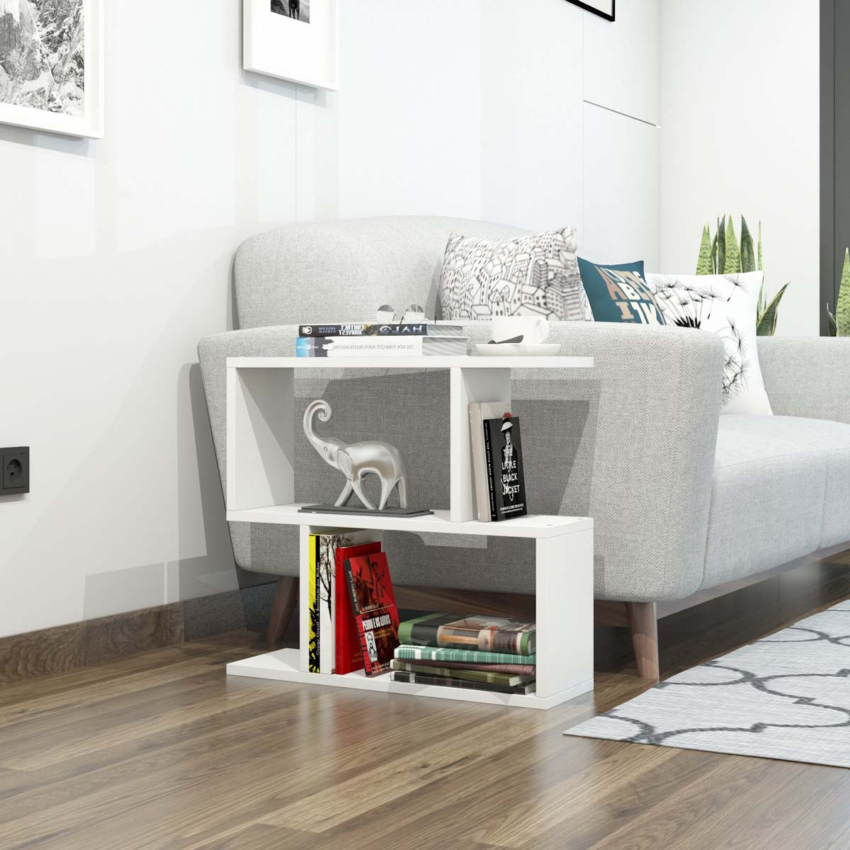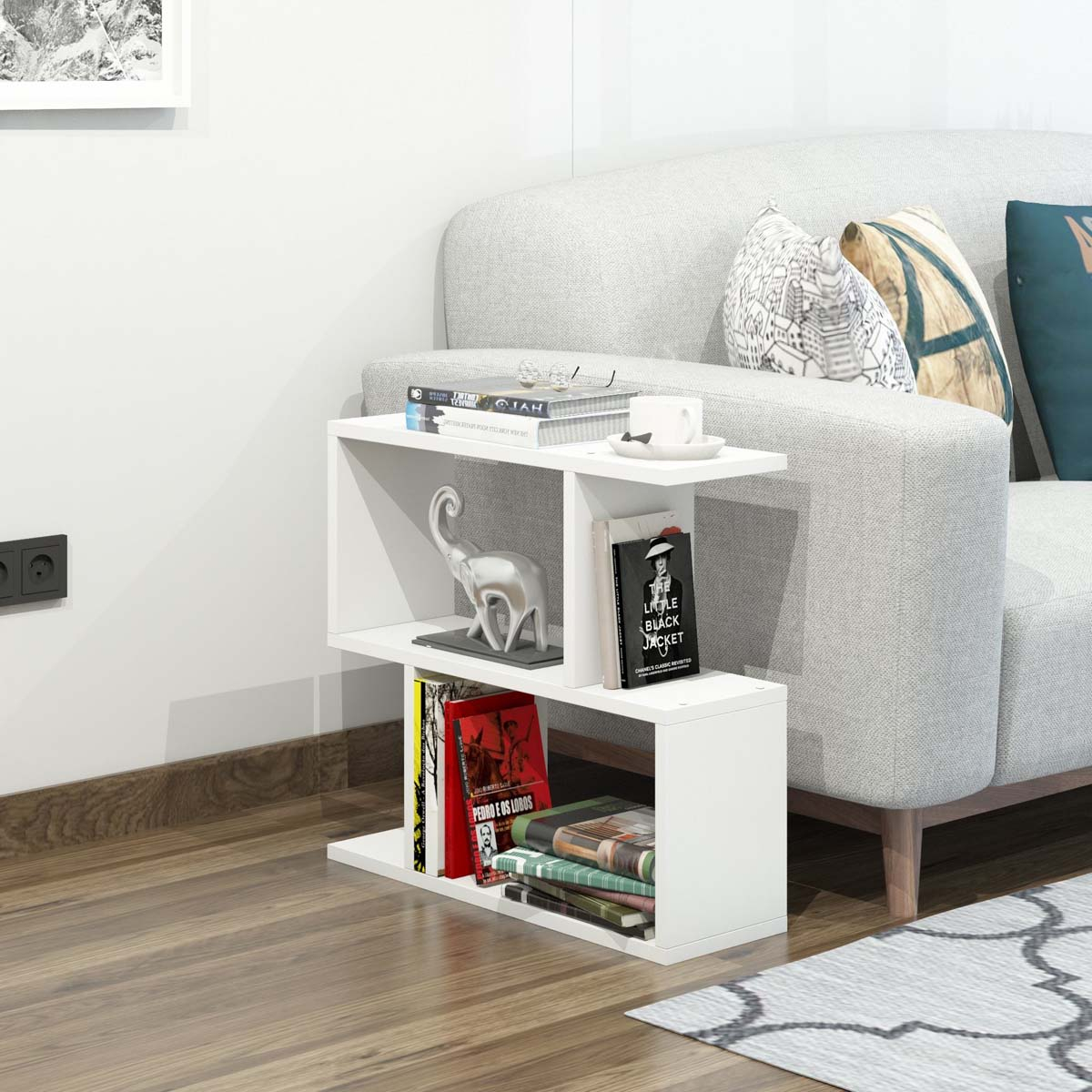 Βιβλιοθήκη δαπέδου σε λευκό χρώμα, για να τοποθετήσετε τα βιβλία και τα διακοσμητικά σας αντικείμενα. Ιδανική για το γραφείο ή το σαλόνι καθώς μπορείτε να την χρησιμοποιήσετε και σαν βοηθητικό τραπεζάκι δίπλα από τον καναπέ. Ανθεκτική κατασκευή από υψηλής ποιότητας υλικά που εξασφαλίζουν μακροχρόνια χρήση. Το προϊόν έρχεται αμοντάριστο και συναρμολογείται βάσει οδηγιών.