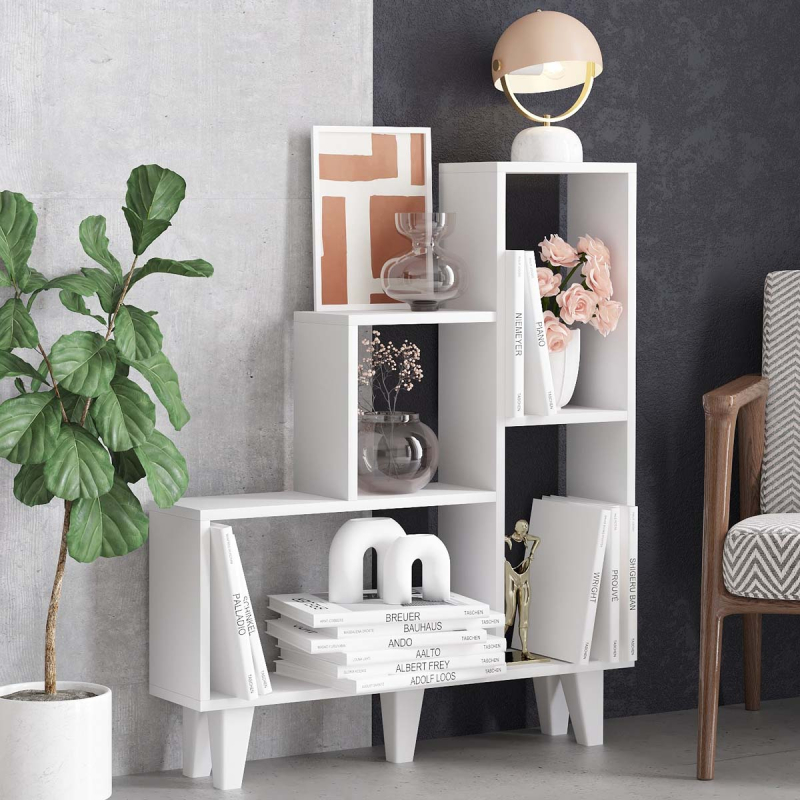 Βιβλιοθήκη δαπέδου σε λευκό χρώμα, για να τοποθετήσετε τα βιβλία ή τα διακοσμητικά σας αντικείμενα. Με μοντέρνο σχεδιασμό που μπορείτε να συνδυάσετε με τα περισσότερα στυλ διακόσμησης. Ιδανική για το σαλόνι, το γραφείο ή και το παιδικό δωμάτιο. Το προϊόν έρχεται αμοντάριστο και συναρμολογείται βάσει οδηγιών.