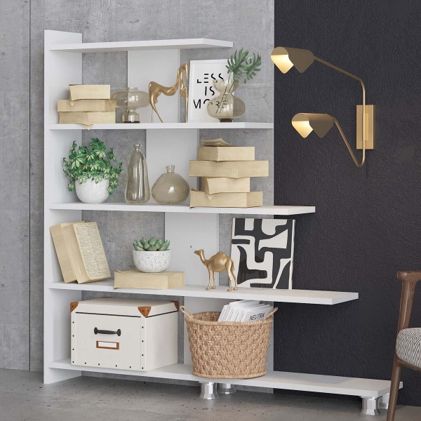 Βιβλιοθήκη δαπέδου για να τοποθετήσετε τα βιβλία και τα διακοσμητικά σας αντικείμενα, σε λευκό χρώμα. Είναι κατασκευασμένη από ανθεκτικά, υψηλής ποιότητας υλικά. Ιδανική για το σαλόνι ή το γραφείο. Με μοντέρνο σχεδιασμό που ταιριάζει με τα περισσότερα στυλ διακόσμησης. Το προϊόν έρχεται αμοντάριστο και συναρμολογείται βάσει οδηγιών.