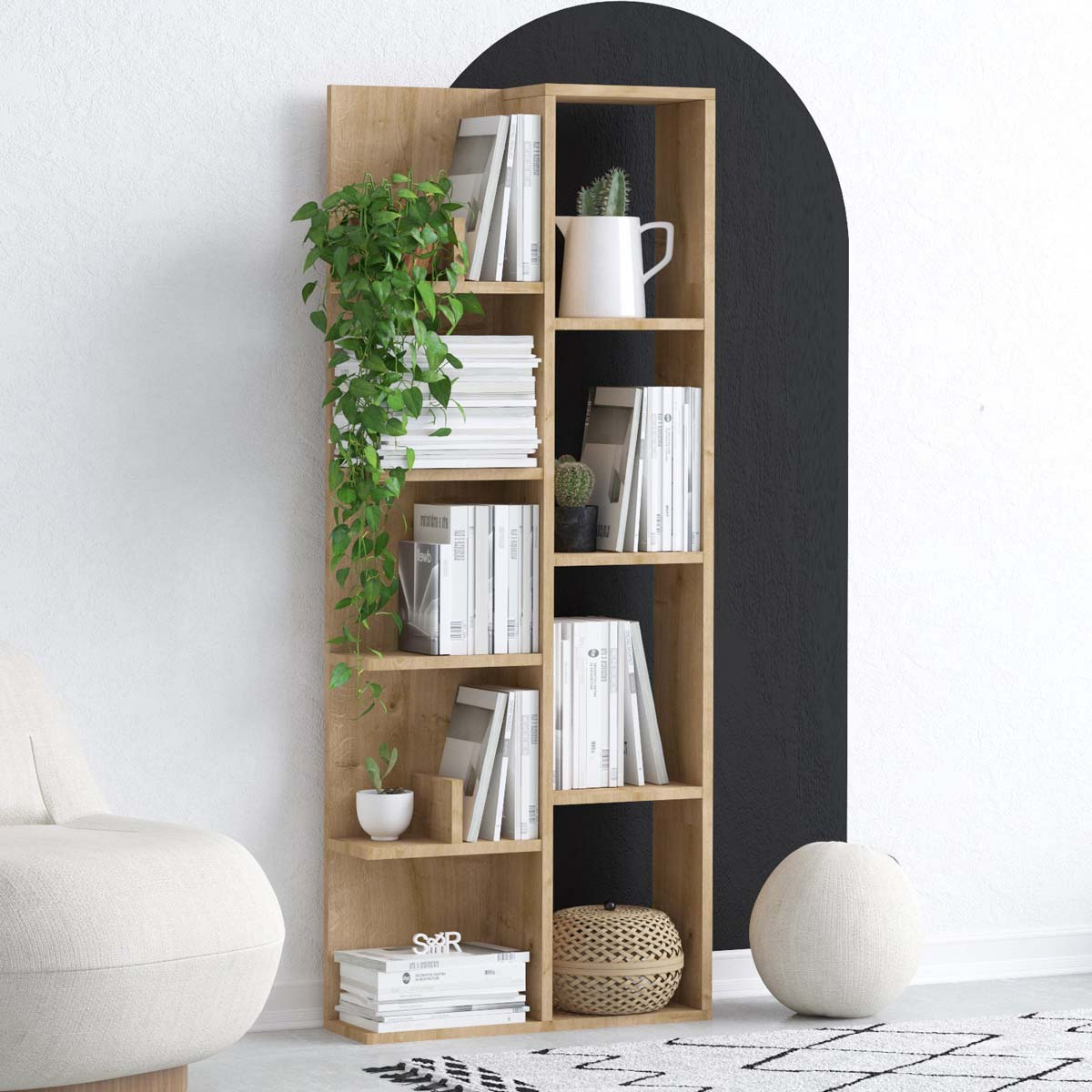 Βιβλιοθήκη δαπέδου σε φυσική απόχρωση ξύλου για να τοποθετήσετε τα βιβλία και τα διακοσμητικά σας αντικείμενα. Ιδανική για το σαλόνι, το γραφείο ή και το παιδικό δωμάτιο. Το προϊόν έρχεται αμοντάριστο και συναρμολογείται βάσει οδηγιών.