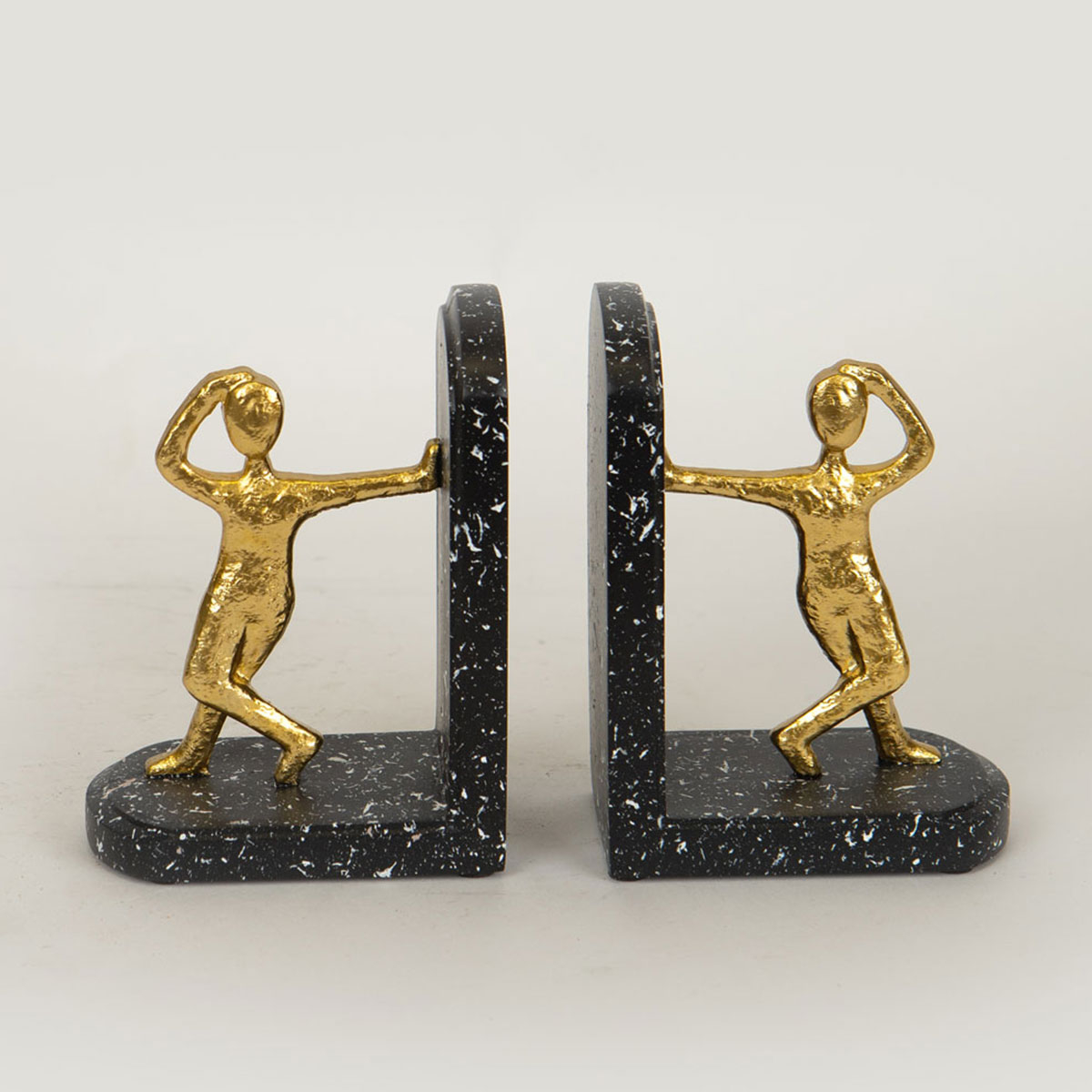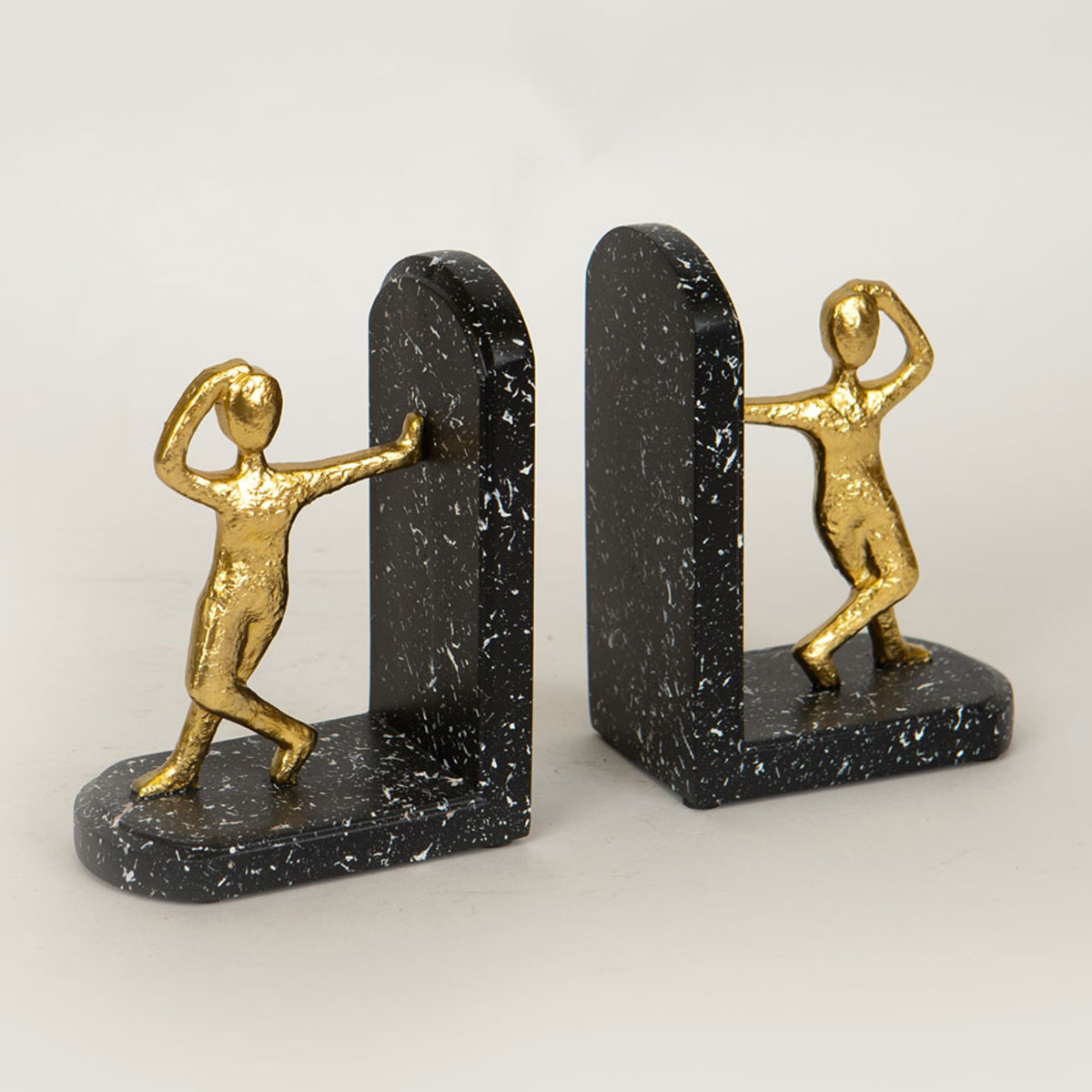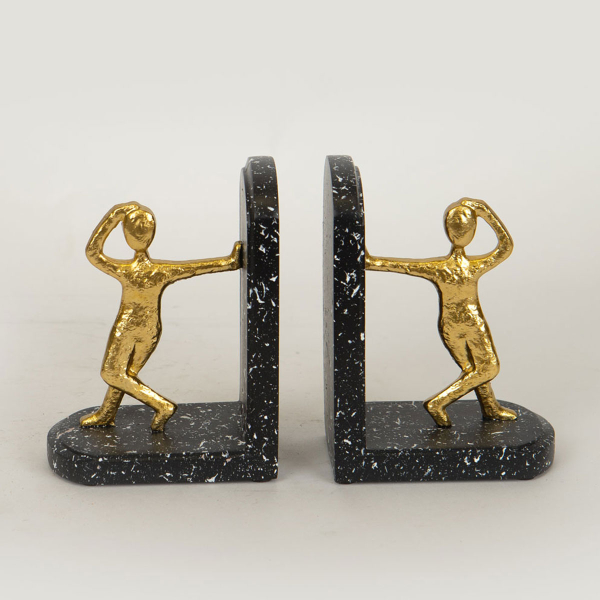 Βιβλιοστάτες από την Estheti σε χρυσό-μαύρο χρώμα με μοντέρνο σχέδιο. Είναι κατασκευασμένοι από πολυρεζίνη με μαρμάρινη όψη. Ιδανικοί για να τοποθετηθούν σε μια βιβλιοθήκη ή κάποιο ράφι για να κρατάνε τα βιβλία σας και να διακοσμήσουν τα έπιπλά σας.