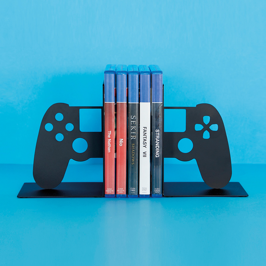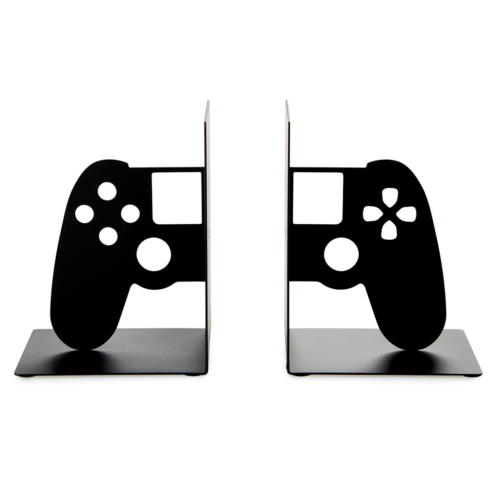 Βιβλιοστάτες σε μαύρο χρώμα και σχήμα τηλεχειριστήριο τηλεπαιχνιδιών από την εταιρεία Octopus. Είναι μεταλλικοί και έχουν μεγάλη αντοχή και ανθεκτικότητα. Στην βάση έχουν προστατευτικό υλικό για την προστασία των επιφανειών. Κατάλληλοι για την στήριξη και οργάνωση βιβλίων, βιντεοπαιχνιδιών και CD. Διατηρείστε την βιβλιοθήκη ή το γραφείο σας όμορφο και τακτοποιημένο.