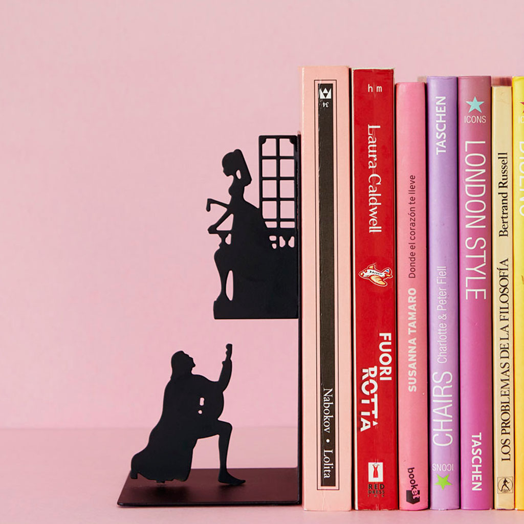Βιβλιοστάτης σε μαύρο χρώμα και σχήμα με φιγούρες του Ρομέο και της Ιουλιέτας από την εταιρεία Octopus. Είναι μεταλλικος και έχει μεγάλη αντοχή και ανθεκτικότητα. Στην βάση έχει προστατευτικό υλικό για την προστασία των επιφανειών. Κατάλληλος για την στήριξη και οργάνωση βιβλίων. Διατηρείστε την βιβλιοθήκη ή το γραφείο σας όμορφο και τακτοποιημένο.