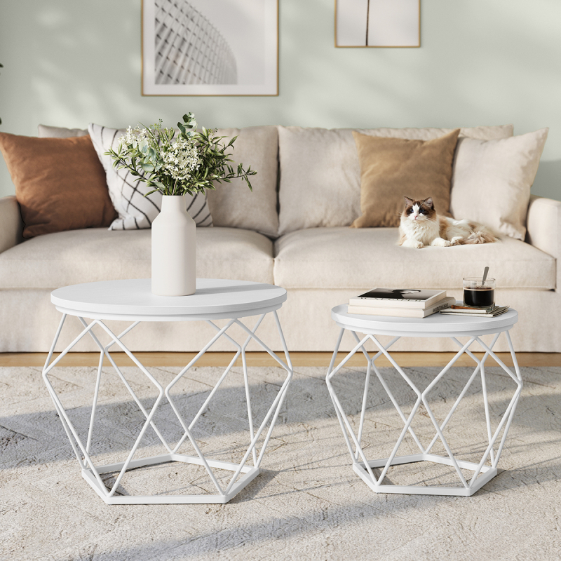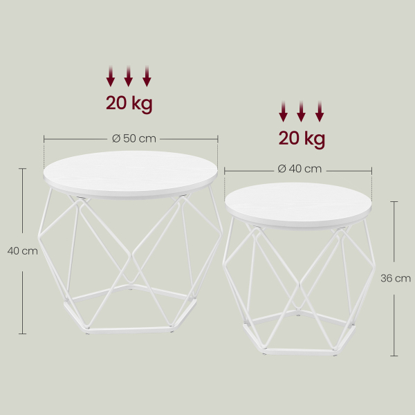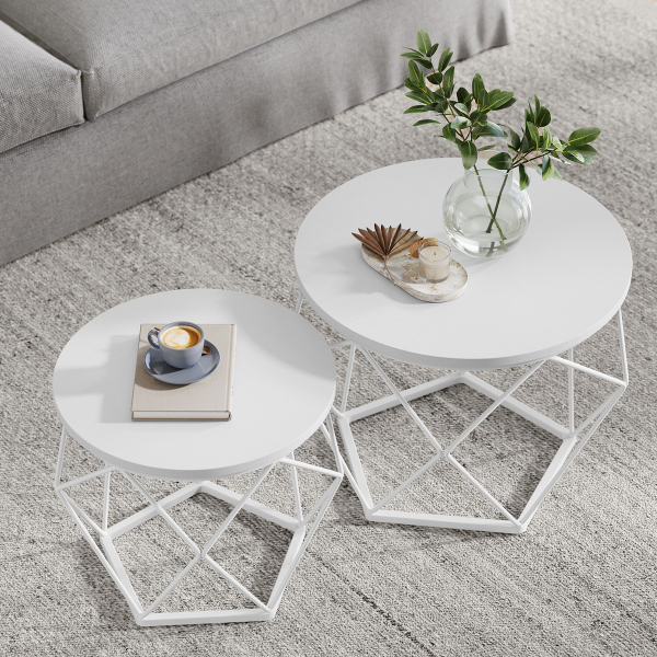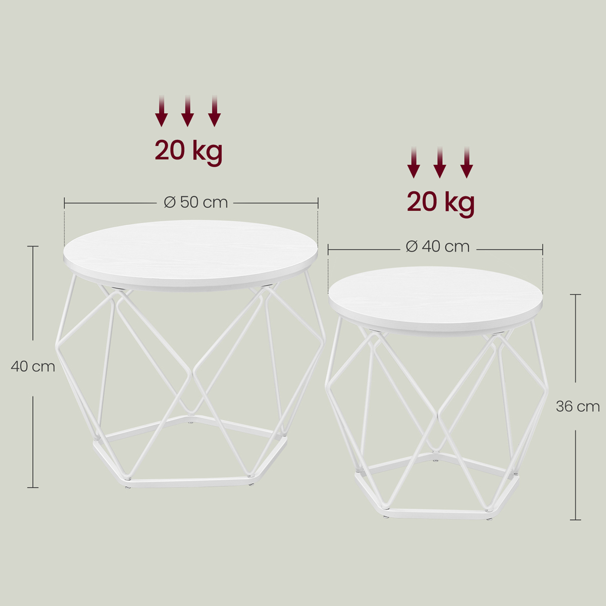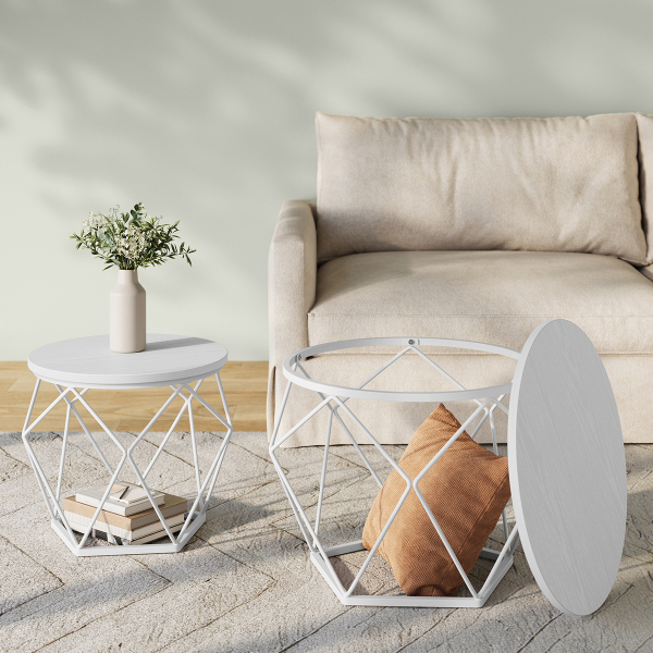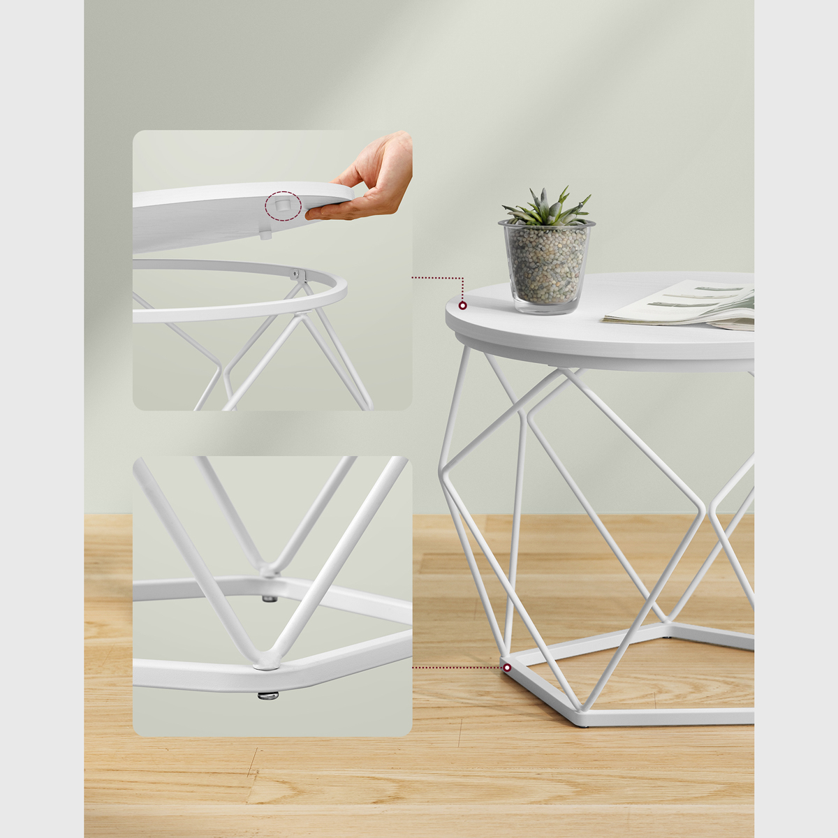 Στρογγυλά τραπεζάκια σε λευκό χρώμα με μοντέρνο σχεδιασμό από την εταιρεία Vasagle. Το κάτω μέρος τους μπορεί να χρησιμοποιηθεί αποθηκευτικός χώρος για βιβλία, περιοδικά κ.α. Ιδανικά για το σαλόνι ή οποιοδήποτε άλλο χώρο σας ταιριάζουν. Μπορούν να δημιουργήσουν μαζί μια σύνθεση ή να τα χρησιμοποιήσετε μεμονωμένα.