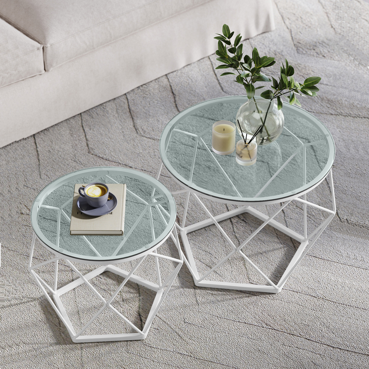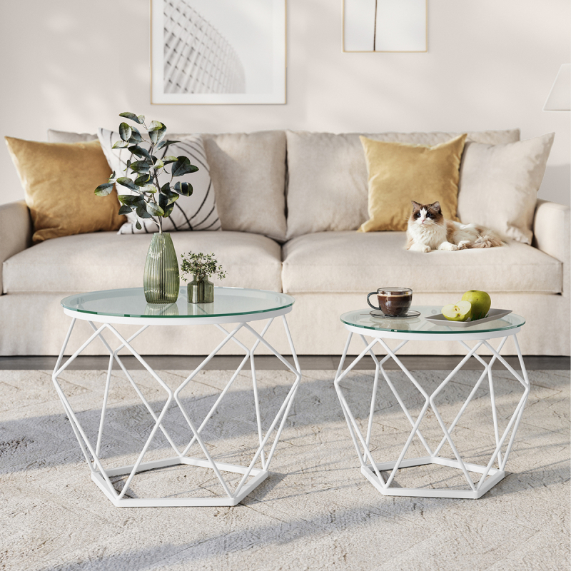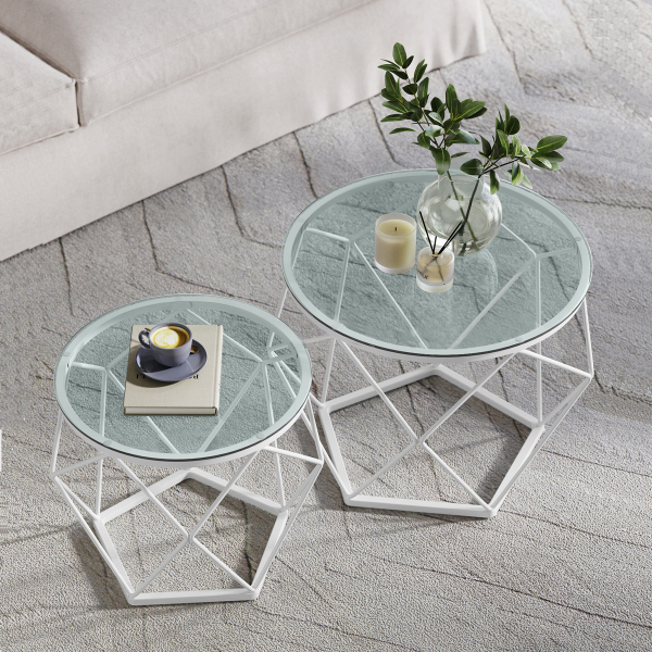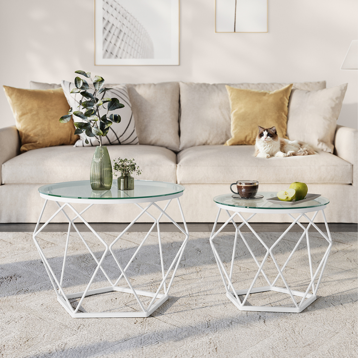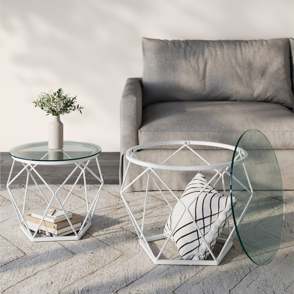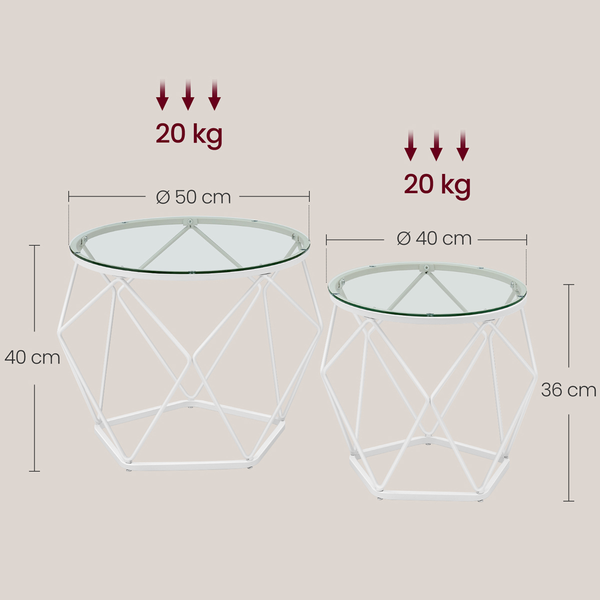 Στρογγυλά τραπεζάκια σε λευκό χρώμα με μοντέρνο σχεδιασμό από την εταιρεία Vasagle. Το κάτω μέρος τους μπορεί να χρησιμοποιηθεί σαν αποθηκευτικός χώρος για βιβλία, περιοδικά κ.α. Ιδανικά για το σαλόνι ή οποιοδήποτε άλλο χώρο σας ταιριάζουν. Μπορούν να δημιουργήσουν μαζί μια σύνθεση ή να τα χρησιμοποιήσετε μεμονωμένα.