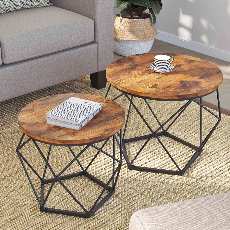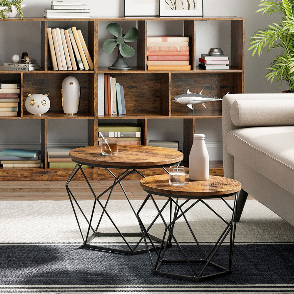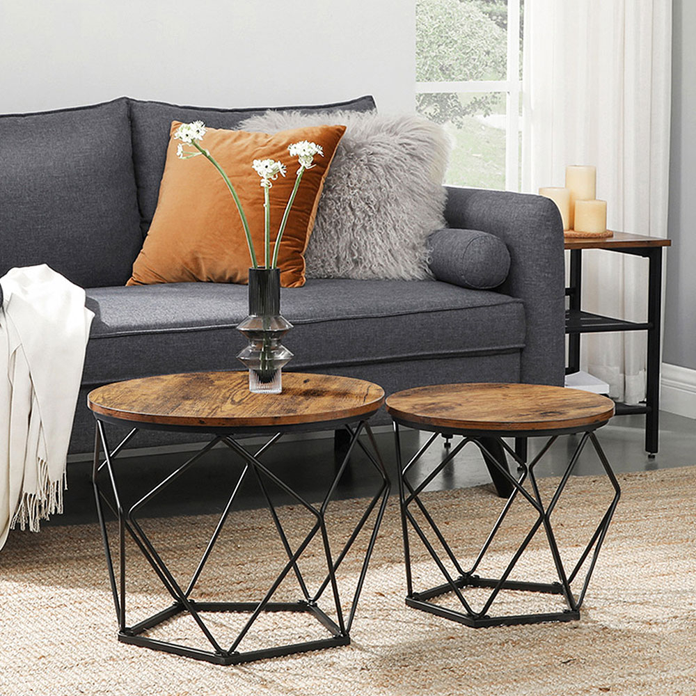 Στρογγυλά τραπεζάκια σε φυσικό χρώμα καρυδιάς με μαύρη βάση και μοντέρνο σχεδιασμό από την εταιρεία Vasagle. Το κάτω μέρος τους μπορεί να χρησιμοποιηθεί σαν αποθηκευτικός χώρος για βιβλία, περιοδικά κ.α. Ιδανικά για το σαλόνι ή οποιοδήποτε άλλο χώρο σας ταιριάζουν. Μπορούν να δημιουργήσουν μαζί μια σύνθεση ή να τα χρησιμοποιήσετε μεμονωμένα.