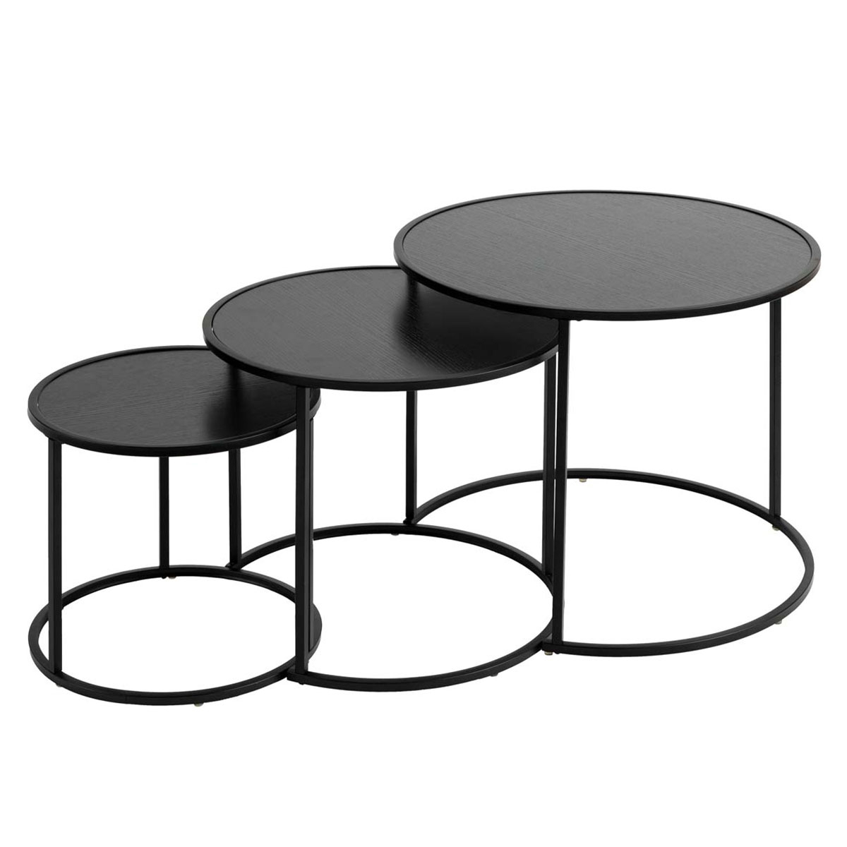 Σετ βοηθητικά τραπεζάκια με μίνιμαλ στυλ σε μαύρο χρώμα και 3 διαστάσεις. Ιδανικά για το σαλόνι ή οποιοδήποτε άλλο χώρο σας ταιριάζουν. Μπορούν να δημιουργήσουν μια σύνθεση όλα μαζί ή να τα χρησιμοποιήσετε μεμονωμένα. Τα προϊόντα έρχονται αμοντάριστα και συναρμολογούνται βάσει οδηγιών.