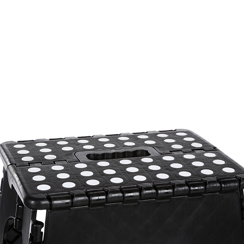 Βοηθητικό σκαλοπάτι σε μαύρο χρώμα κατασκευασμένο από πολυπροπυλένιο με αντιολισθητική επιφάνεια για πάτημα. Ο πτυσσόμενος μηχανισμό που διαθέτει για να διπλώνει το καθιστά εύκολο στη μεταφορά και στην αποθήκευση. Με κλιπ για να ασφαλίζει το άνοιγμα. Ιδανικό σκαλοπάτι για να φτάνετε στα πιο ψηλά σημεία του σπιτιού. Μέγιστο βάρος 100kg.