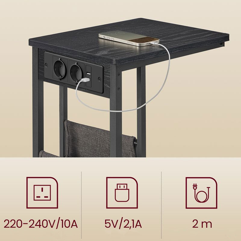 Βοηθητικό τραπεζάκι σε μαύρο χρώμα, με παροχή ρεύματος και μοντέρνο σχεδιασμό από την εταιρεία Vasagle. Με αποθηκευτικό χώρο για το βιβλίο, το περιοδικό, το τηλεκοντρόλ ή ότι άλλο θέλετε. Μπορείτε να το τοποθετήσετε δίπλα από τον καναπέ, δίπλα από το κρεβάτι σαν κομοδίνο ή όπου αλλού σας είναι απαραίτητο. Ιδανικό και πρακτικό έπιπλο που θα ταιριάξει σε κάθε μοντέρνο σπίτι. Το προϊόν έρχεται αμοντάριστο και συναρμολογείται βάσει οδηγιών.