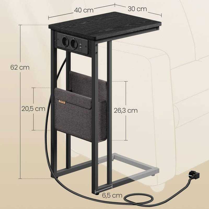| VasagleΒοηθητικό Τραπεζάκι Με Ενσωματωμένες Πρίζες & USB (40x30x62) Vasagle LET356B02