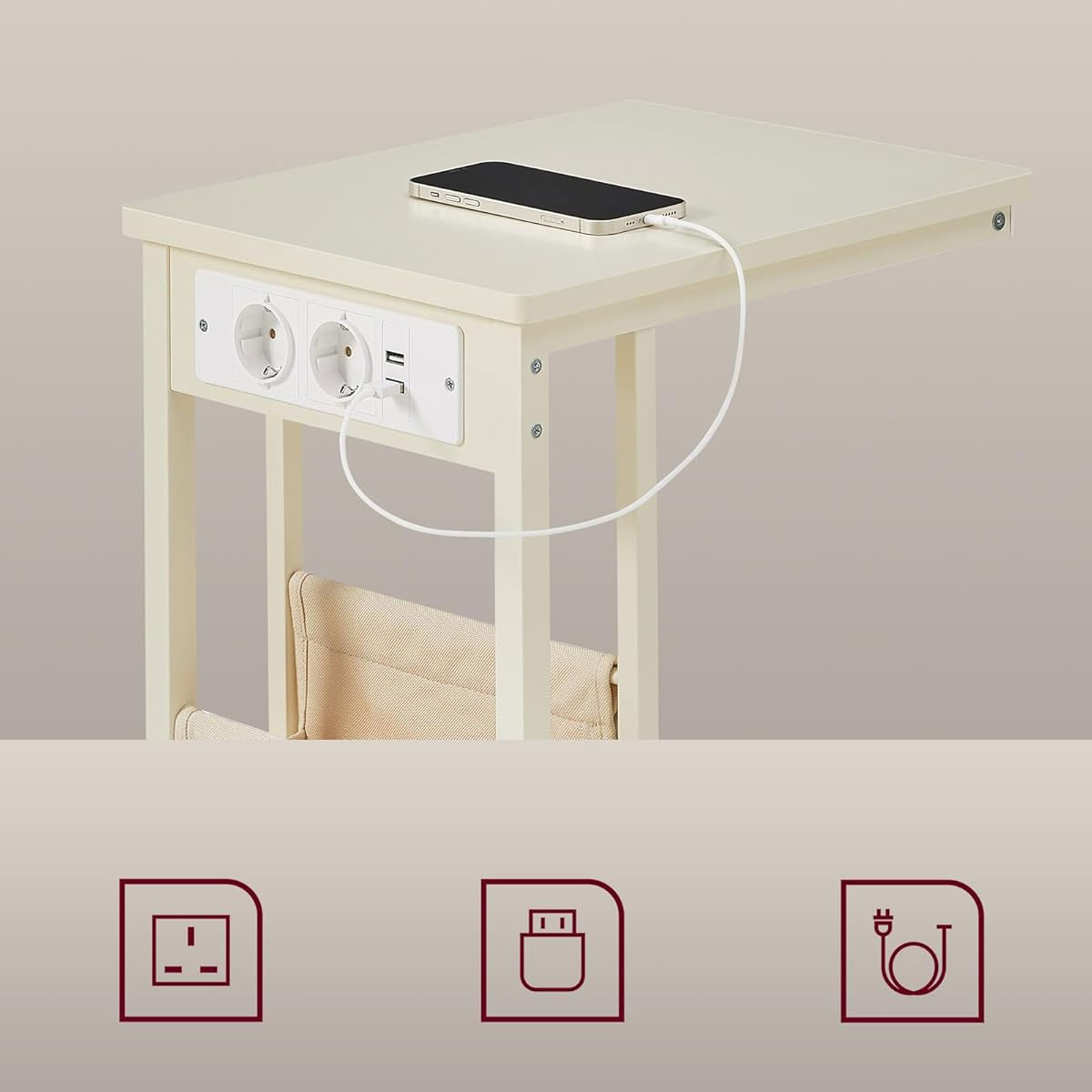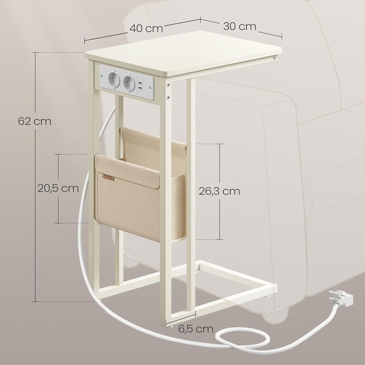 Βοηθητικό τραπεζάκι σε εκρού χρώμα, με παροχή ρεύματος και μοντέρνο σχεδιασμό από την εταιρεία Vasagle. Με αποθηκευτικό χώρο για το βιβλίο, το περιοδικό, το τηλεκοντρόλ ή ότι άλλο θέλετε. Μπορείτε να το τοποθετήσετε δίπλα από τον καναπέ, δίπλα από το κρεβάτι σαν κομοδίνο ή όπου αλλού σας είναι απαραίτητο. Ιδανικό και πρακτικό έπιπλο που θα ταιριάξει σε κάθε μοντέρνο σπίτι. Το προϊόν έρχεται αμοντάριστο και συναρμολογείται βάσει οδηγιών.