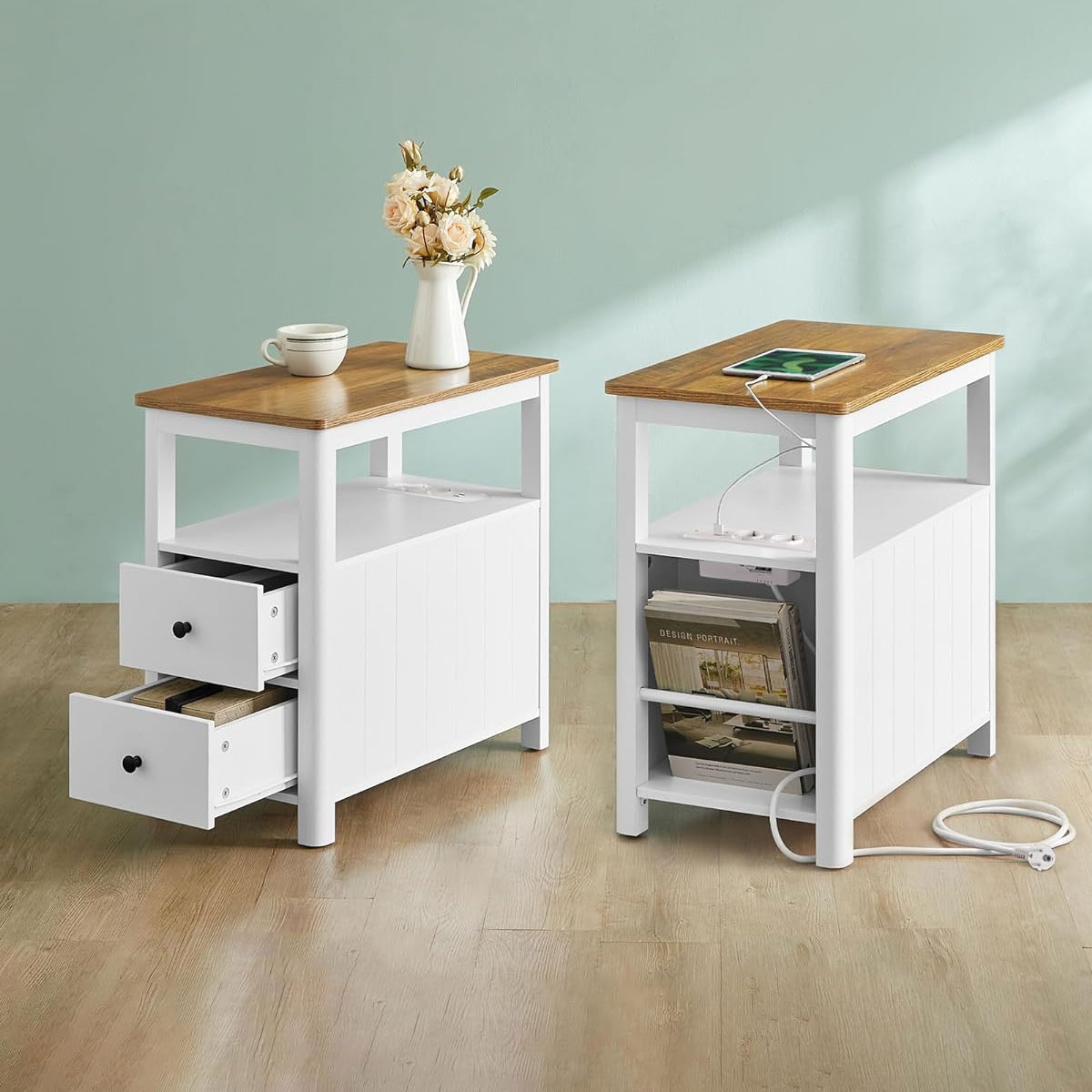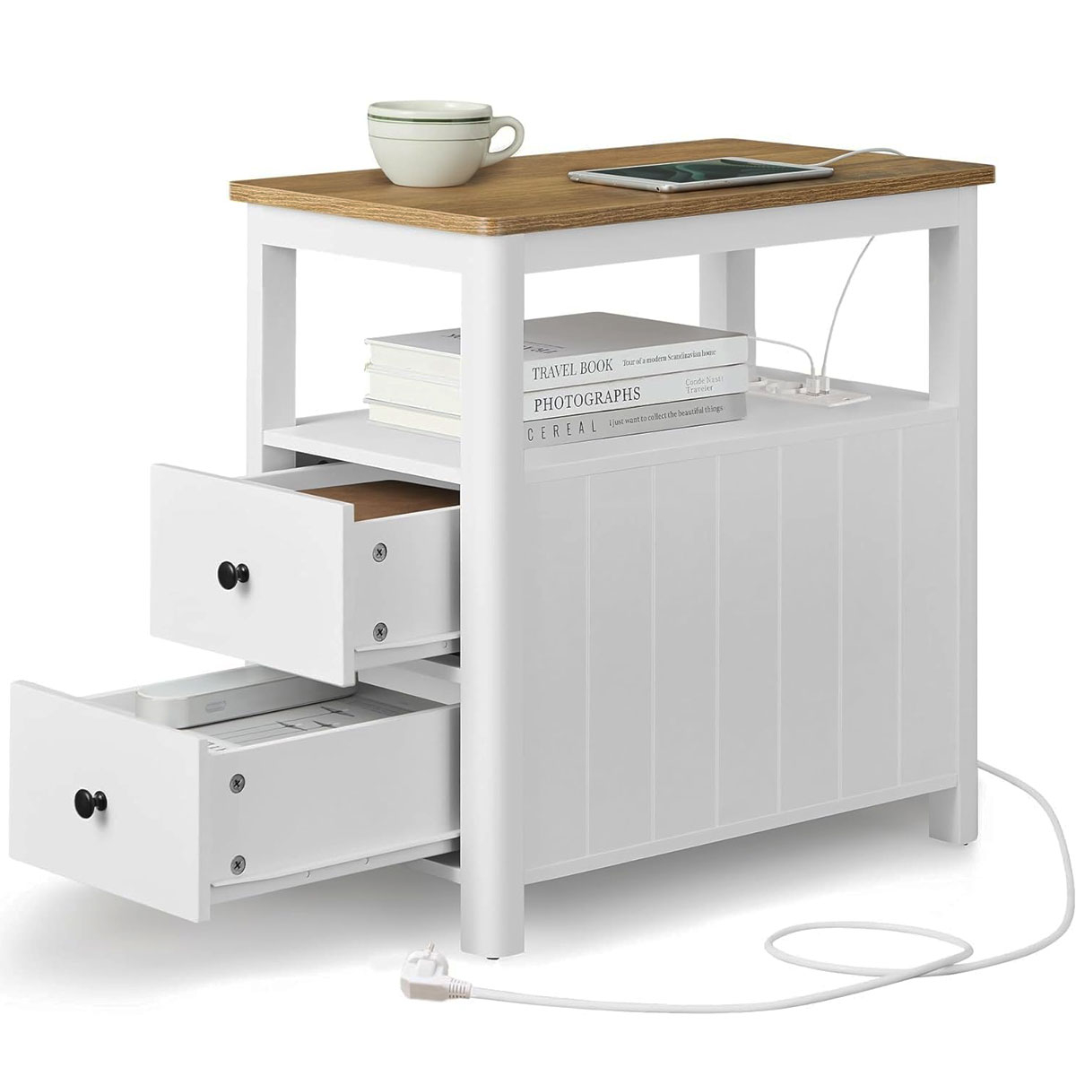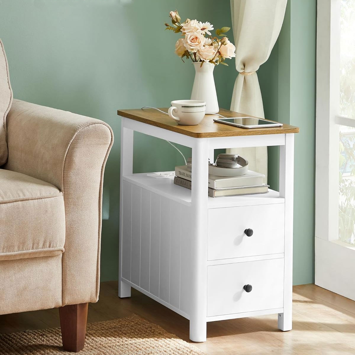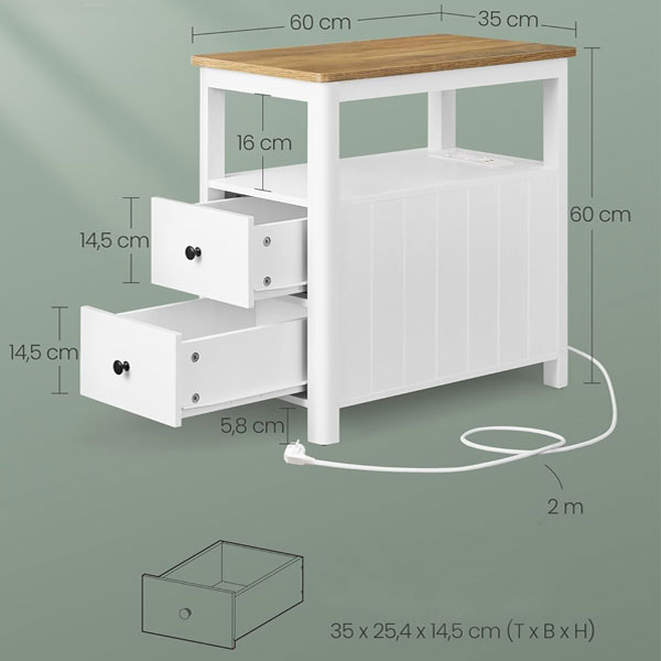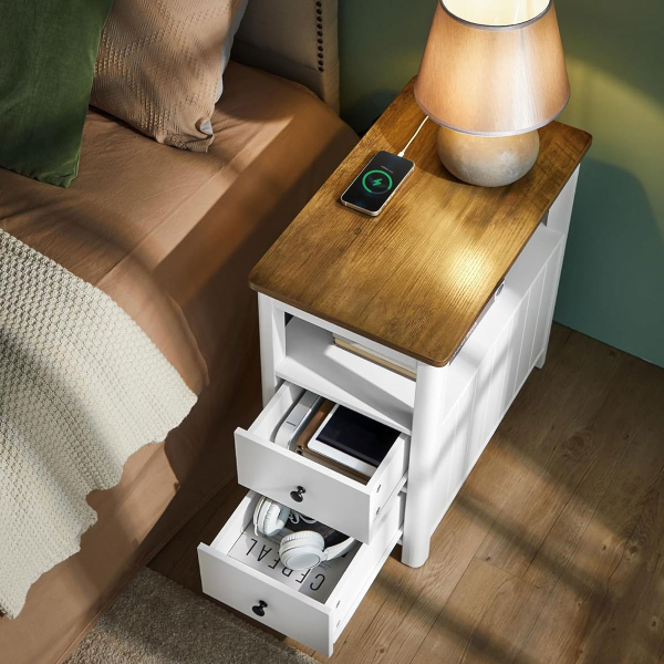 Βοηθητικό τραπεζάκι με παροχή ρεύματος και μοντέρνο σχεδιασμό από την εταιρεία Vasagle. Διαθέτει χώρο για να αποθηκεύετε το βιβλίο, το περιοδικό, το τηλεκοντρόλ ή ότι άλλο θέλετε. Μπορείτε να το τοποθετήσετε δίπλα από τον καναπέ, δίπλα από το κρεβάτι σαν κομοδίνο ή όπου αλλού σας είναι απαραίτητο. Ιδανικό και πρακτικό έπιπλο που θα ταιριάξει σε κάθε μοντέρνο σπίτι. Το προϊόν έρχεται αμοντάριστο και συναρμολογείται βάσει οδηγιών.
