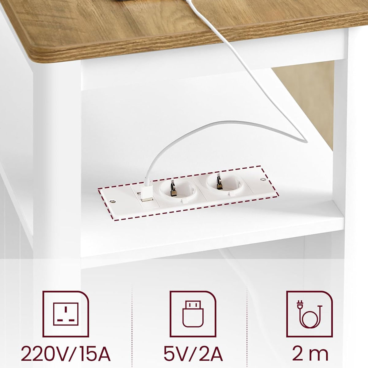 | VasagleΒοηθητικό Τραπεζάκι Με Ενσωματωμένες Πρίζες & USB (60x35x60) Vasagle LET327W14