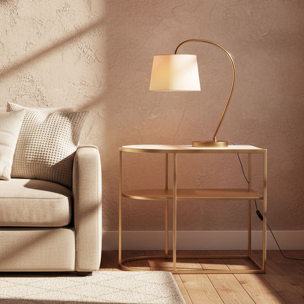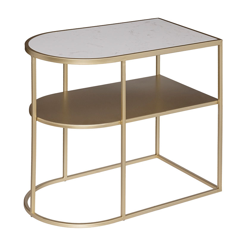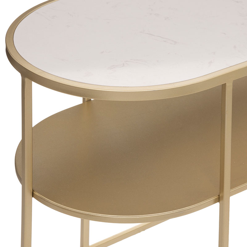 Βοηθητικό τραπεζάκι σαλονιού σε χρυσό-λευκό χρώμα. Ο μοντέρνος σχεδιασμός του ταιριάζει σε κάθε διακόσμηση και είναι ιδανικό για να το τοποθετήσετε δίπλα από την πολυθρόνα ή τον καναπέ σας. Το προϊόν έρχεται αμοντάριστο και συναρμολογείται βάσει οδηγιών.