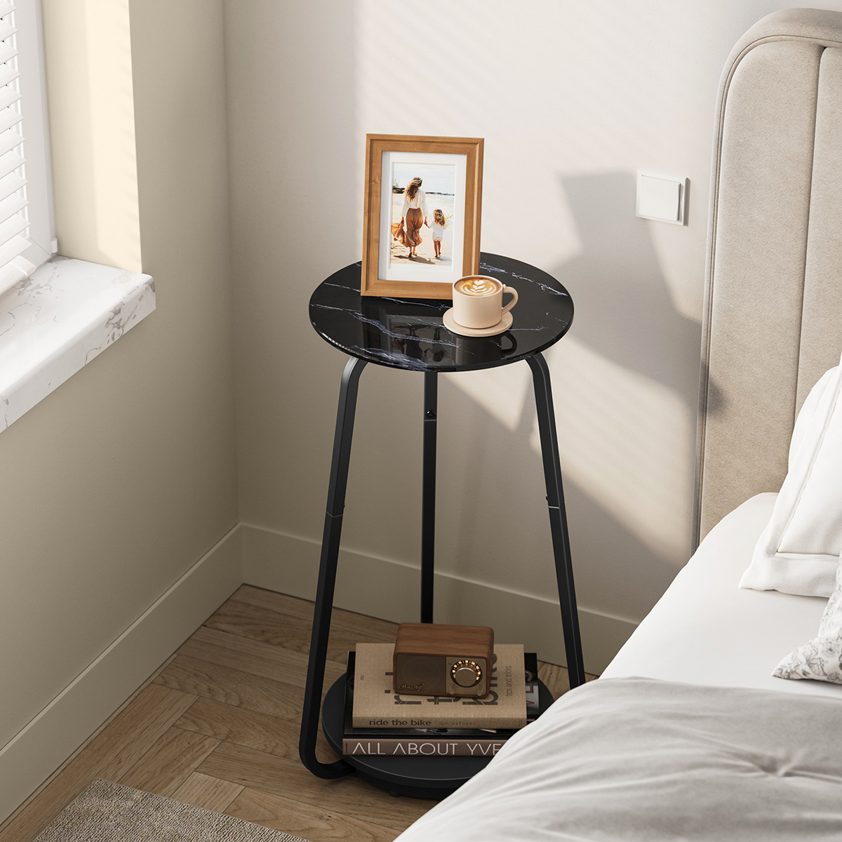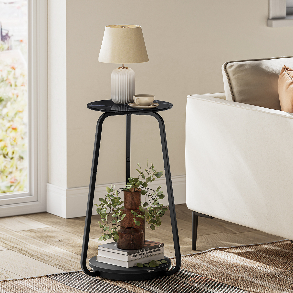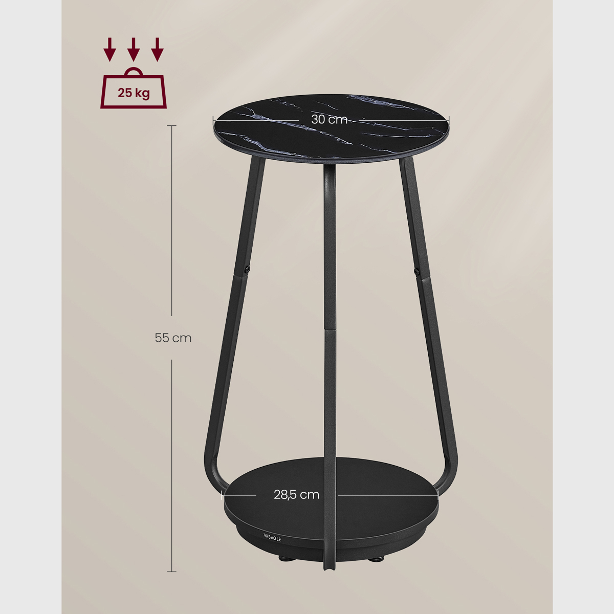 Στρογγυλό τραπεζάκι με μοντέρνο σχεδιασμό σε μαύρο χρώμα και επιφάνεια με εφέ μαρμάρου από την εταιρεία Vasagle. Ιδανικό για το σαλόνι και σε οποιοδήποτε άλλο χώρο σας ταιριάζουν, ακόμα και στην κρεβατοκάμαρα σαν κομοδίνο. Τα προϊόν έρχεται αμοντάριστο και συναρμολογείται βάσει οδηγιών.