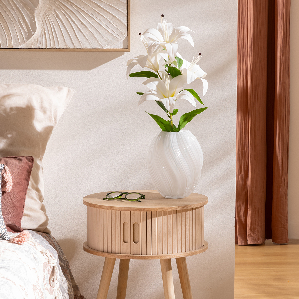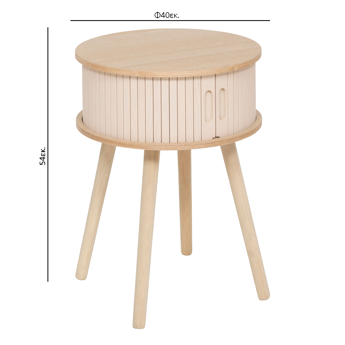 Βοηθητικό τραπεζάκι με αποθηκευτικό χώρο και vintage ύφος σε μπεζ χρώμα. Ιδανικό για τοποθέτηση στο σαλόνι ή σε οποιοδήποτε άλλο χώρο σας ταιριάζει. Συνδυάστε το με τα υπόλοιπα είδη της σειράς για ένα ολοκληρωμένο αποτέλεσμα. Το προϊόν έρχεται αμοντάριστο και συναρμολογείται βάσει οδηγιών.