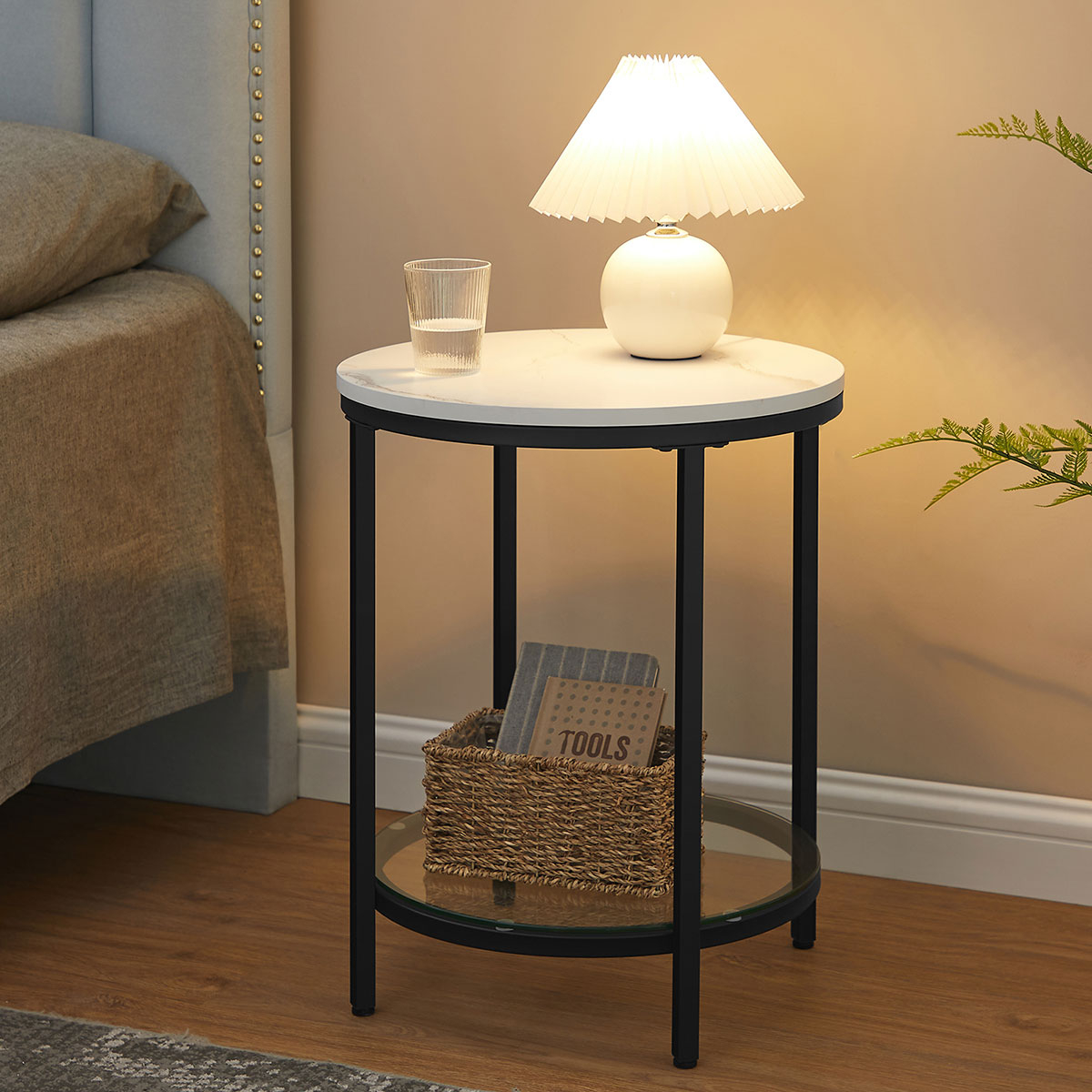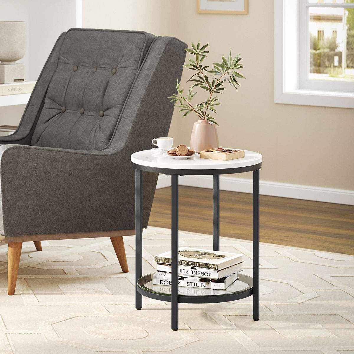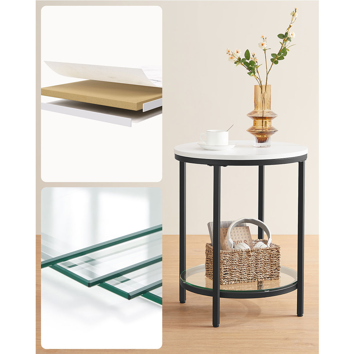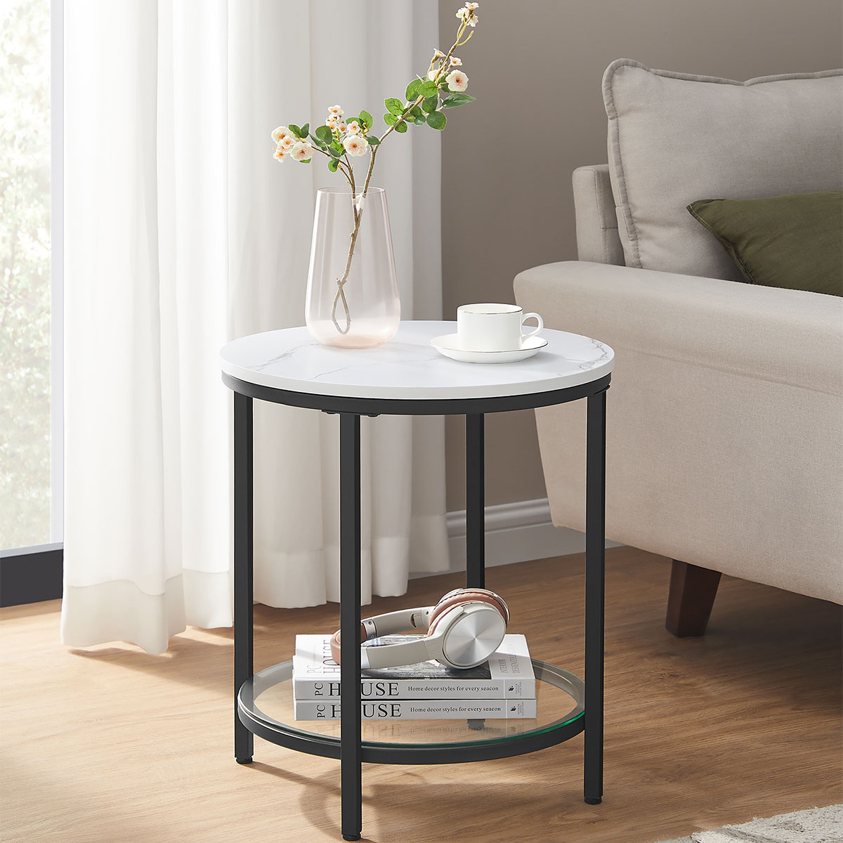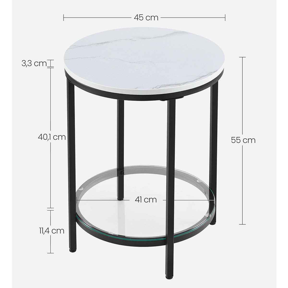 Στρογγυλό τραπεζάκι με μοντέρνο σχεδιασμό και επιφάνεια με εφέ λευκού μαρμάρου από την εταιρεία Vasagle. Διαθέτει ράφι για να αποθηκεύετε το βιβλίο, το περιοδικό, το τηλεκοντρόλ ή ότι άλλο θέλετε. Ιδανικό για χρήση στο σαλόνι, το χολ, το γραφείο ή ακόμα και σαν κομοδίνο δίπλα από το κρεβάτι. Συνδυάστε το με τα υπόλοιπα είδη της ίδιας συλλογής για ένα ολοκληρωμένο αποτέλεσμα στο χώρο σας. Το προϊόν έρχεται αμοντάριστο και συναρμολογείται βάσει οδηγιών.