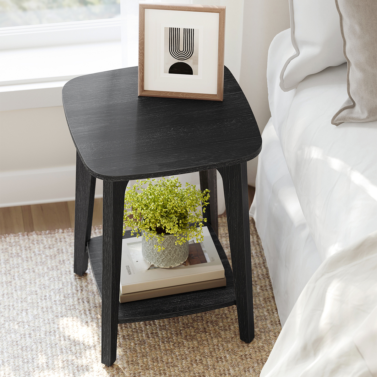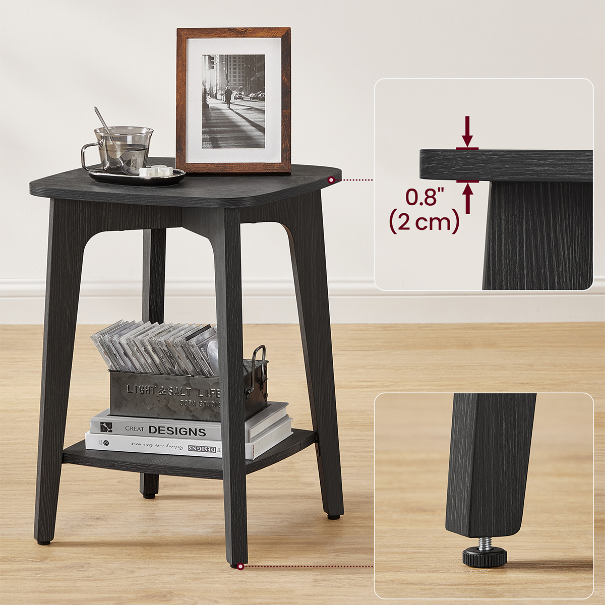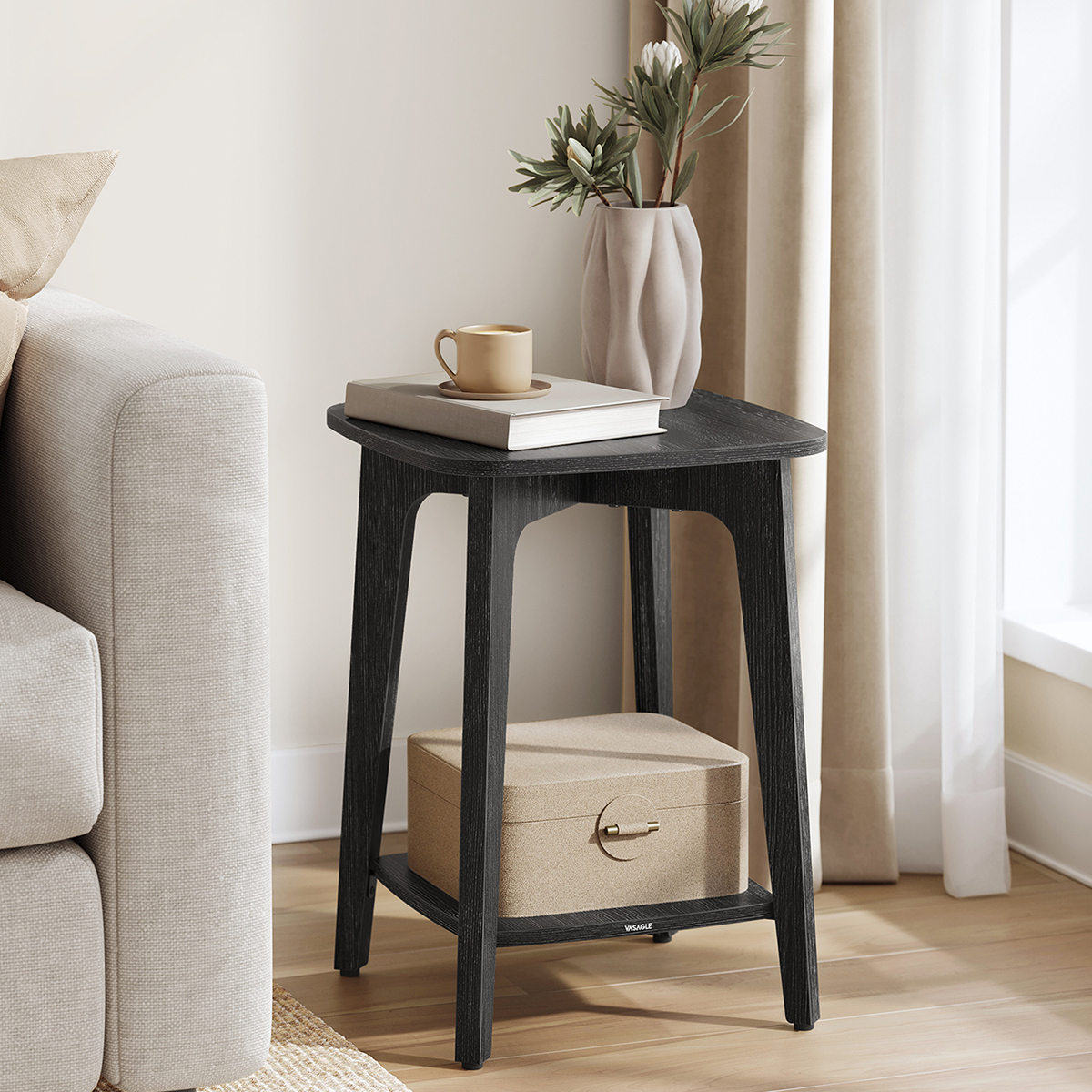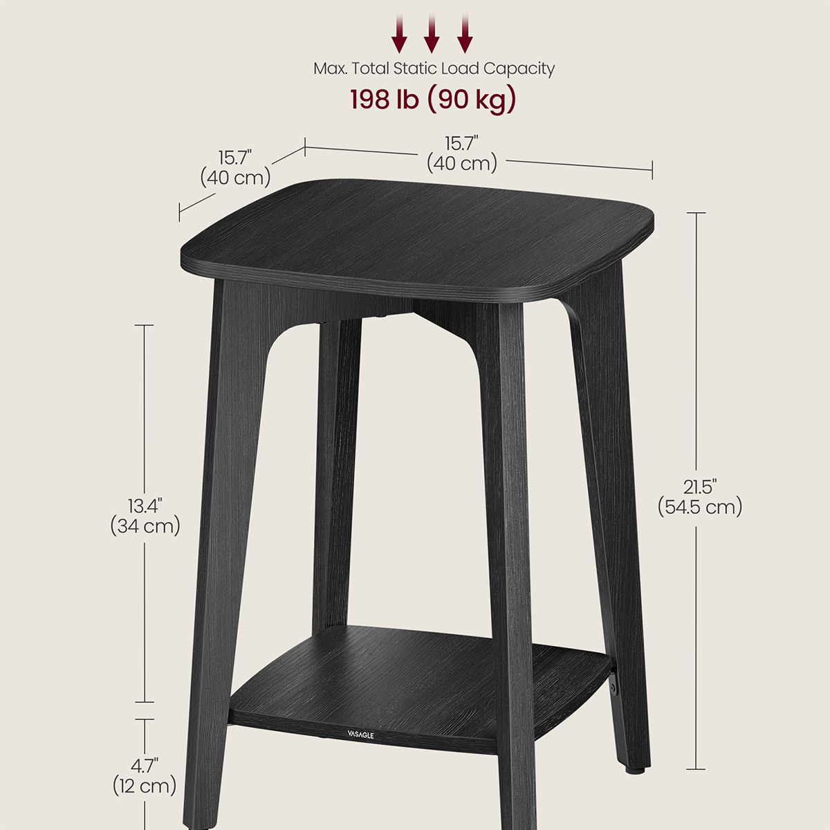 Τετράγωνο τραπεζάκι σε μαύρο χρώμα με κλασικό σχεδιασμό από την εταιρεία Vasagle. Είναι ιδανικό για χρήση ως βοηθητικό τραπέζι στο σαλόνι, το χολ, το γραφείο ή ακόμα και σαν κομοδίνο δίπλα από το κρεβάτι. Το προϊόν έρχεται αμοντάριστο.