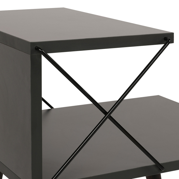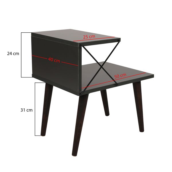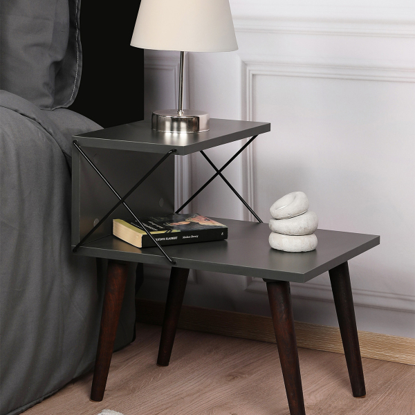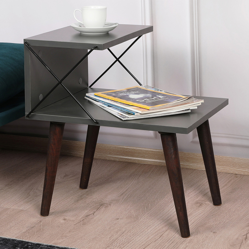 Βοηθητικό τραπεζάκι με μοντέρνο σχεδιασμό σε γκρι χρώμα. Χάρη στον πρωτότυπο σχεδιασμό του, προσφέρει αποθηκευτικό χώρο στο κάτω μέρος για τα περιοδικά, τα βιβλία ή ότι άλλο επιθυμείτε. Iδανικό για να στολίσει τον χώρο του καθιστικού σας, με ποιότητα και στυλ. Μπορεί να χρησιμοποιηθεί και σαν κομοδίνο στην κρεβατοκάμαρά σας. Το προϊόν έρχεται αμοντάριστο και συναρμολογείται βάσει οδηγιών.