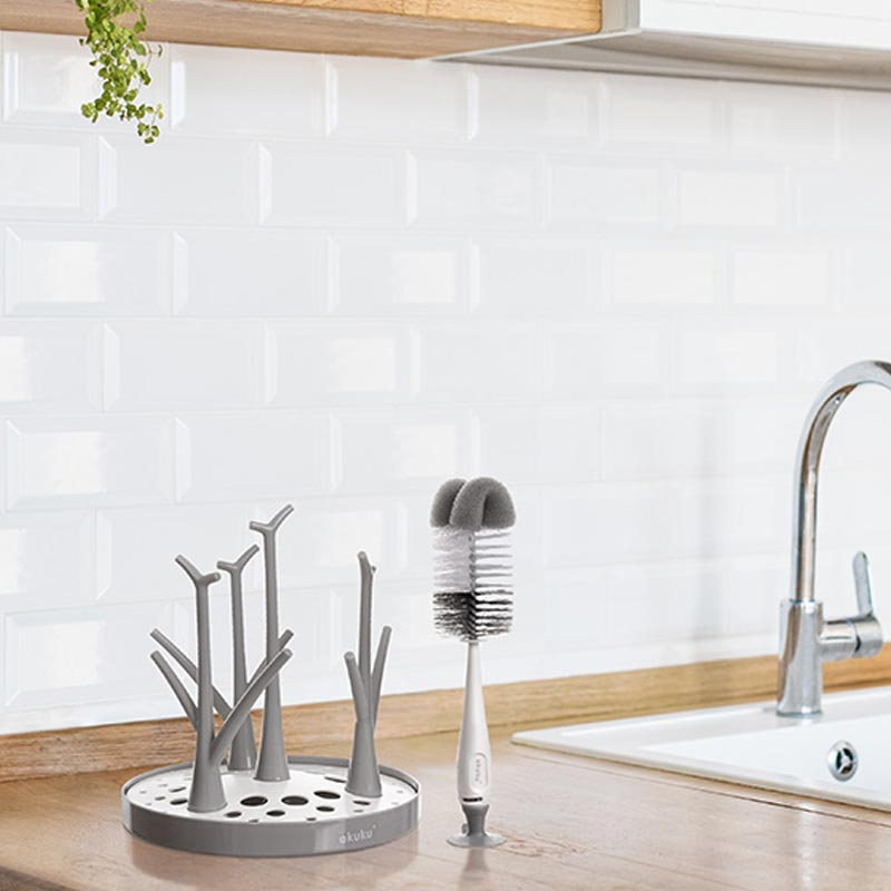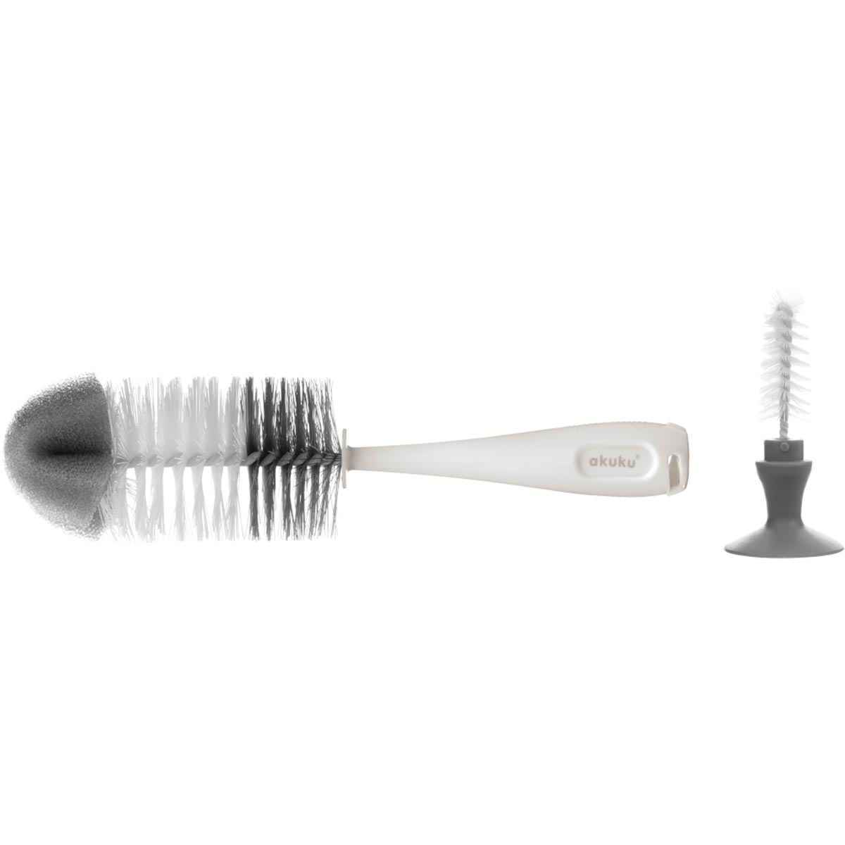 Βούρτσα καθαρισμού μπιμπερό σε γκρι χρώμα από την εταιρία Akuku. Είναι κατασκευασμένη από πλαστικό χωρίς BPA. Στο κάτω μέρος της βούρτσας υπάρχει βεντούζα για να στέκεται σε οποιαδήποτε επίπεδη επιφάνεια. Οι απαλές τρίχες που διαθέτει και το σφουγγάρι στην άκρη καθιστούν την βούρτσα ιδανική για να καθαρίσει ακόμη και τα πιο δύσκολα σημεία των μπιμπερό. Επιπλέον στο κάτω μέρος της βούρτσας μαζί με την βεντούζα, υπάρχει και μία μικρή βούρτσα ιδανική για τον καθαρισμό των θηλών.