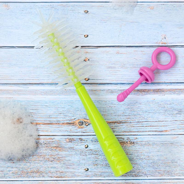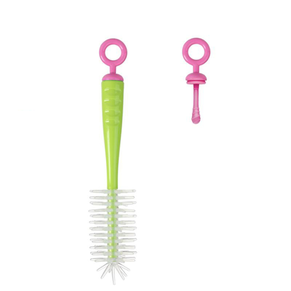 Βούρτσα καθαρισμού της εταιρείας Kiokids σε λαχανί χρώμα με ροζ λεπτομέρειες. Είναι κατασκευασμένη από πλαστικό υλικό χωρίς BPA, με εύκαμπτες ίνες από σιλικόνη που δεν χαράζουν. Περιλαμβάνει και βούρτσα καθαρισμού για τις θηλές. Ιδανικό για να πλένετε τα μπιμπερό και τις θηλές χωρίς να προκαλείτε φθορές.